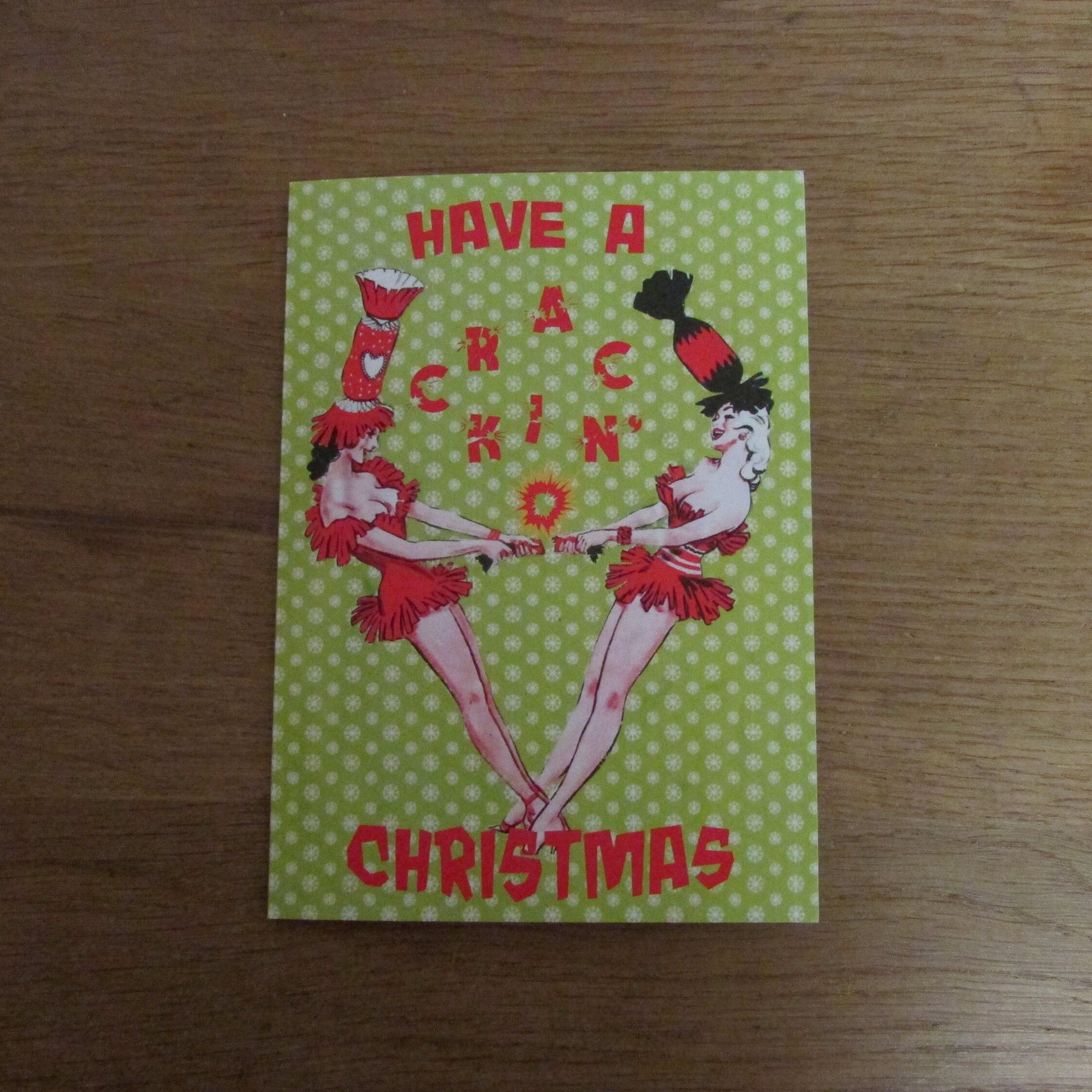 Pack of 10 unique home-made mixed media/digital Christmas cards: "Have a Crackin' Christmas"