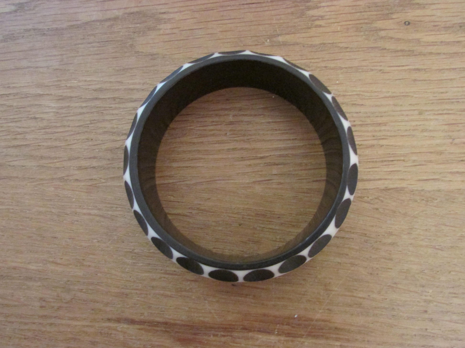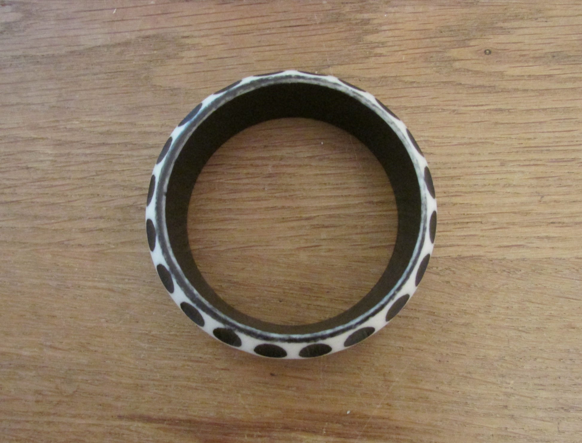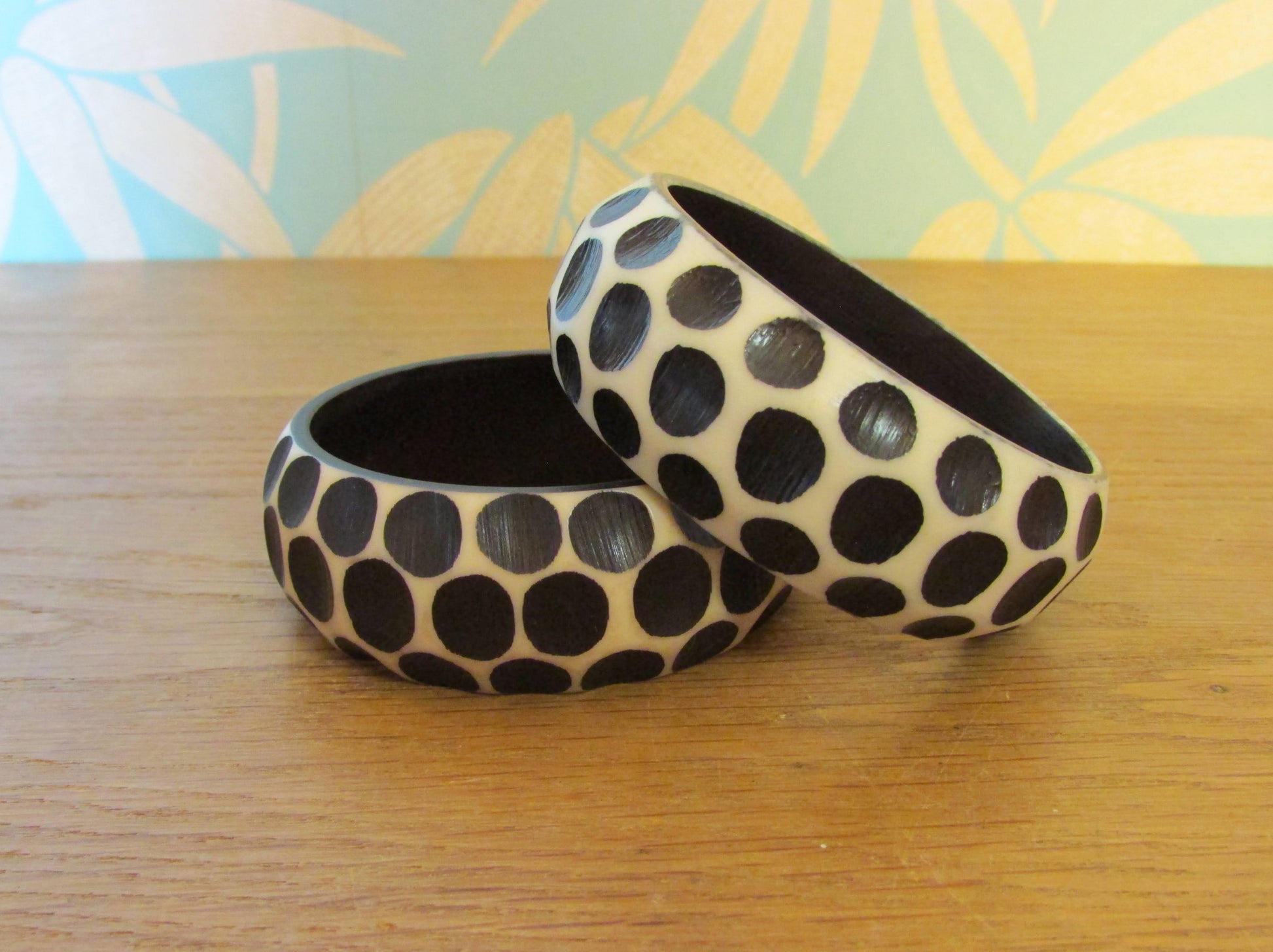Pair of 1960s carved resin monochrome polka dot bangles