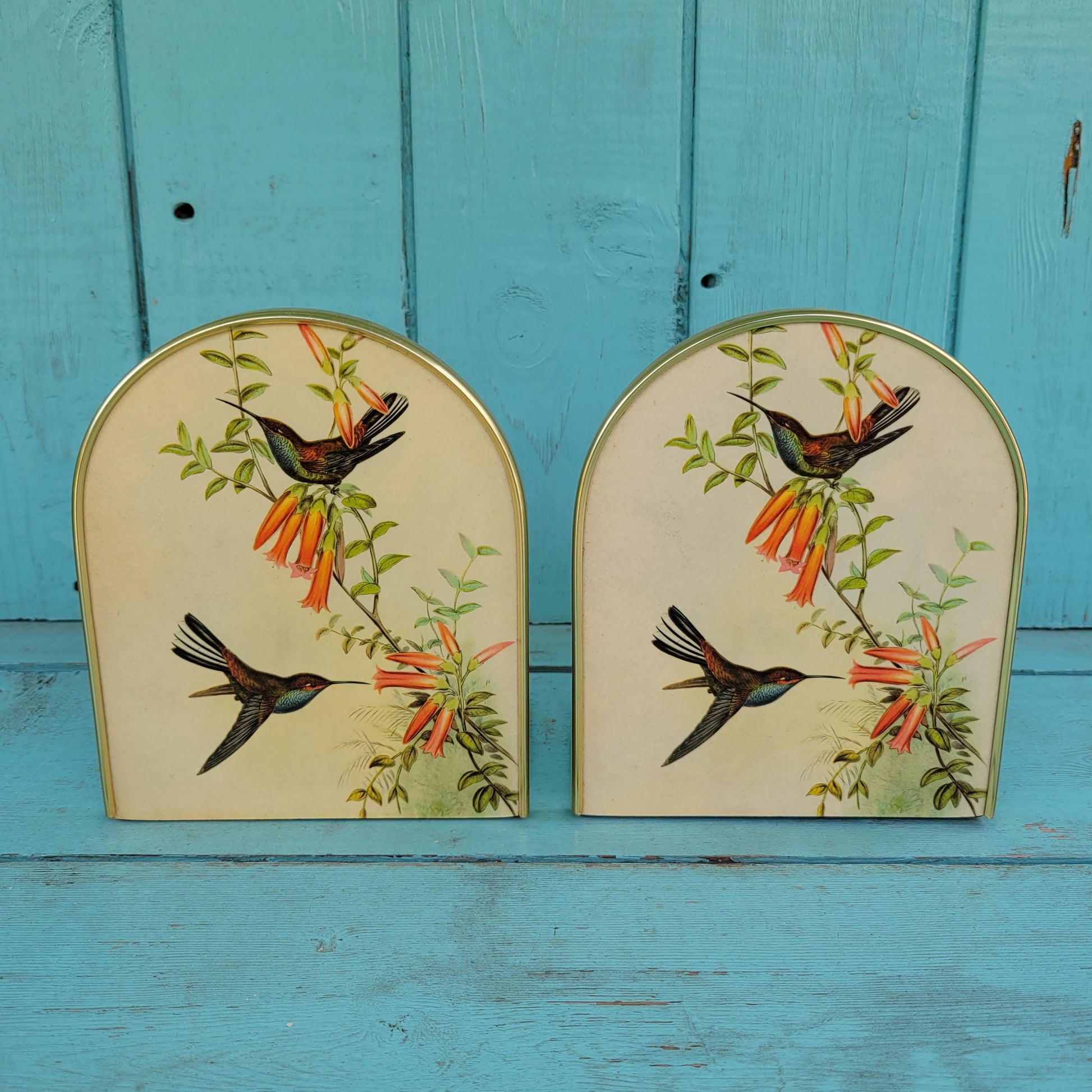 Pair of 1970s Chalford Glos Arnold Design brass-edged John Gould hummingbird print bookends