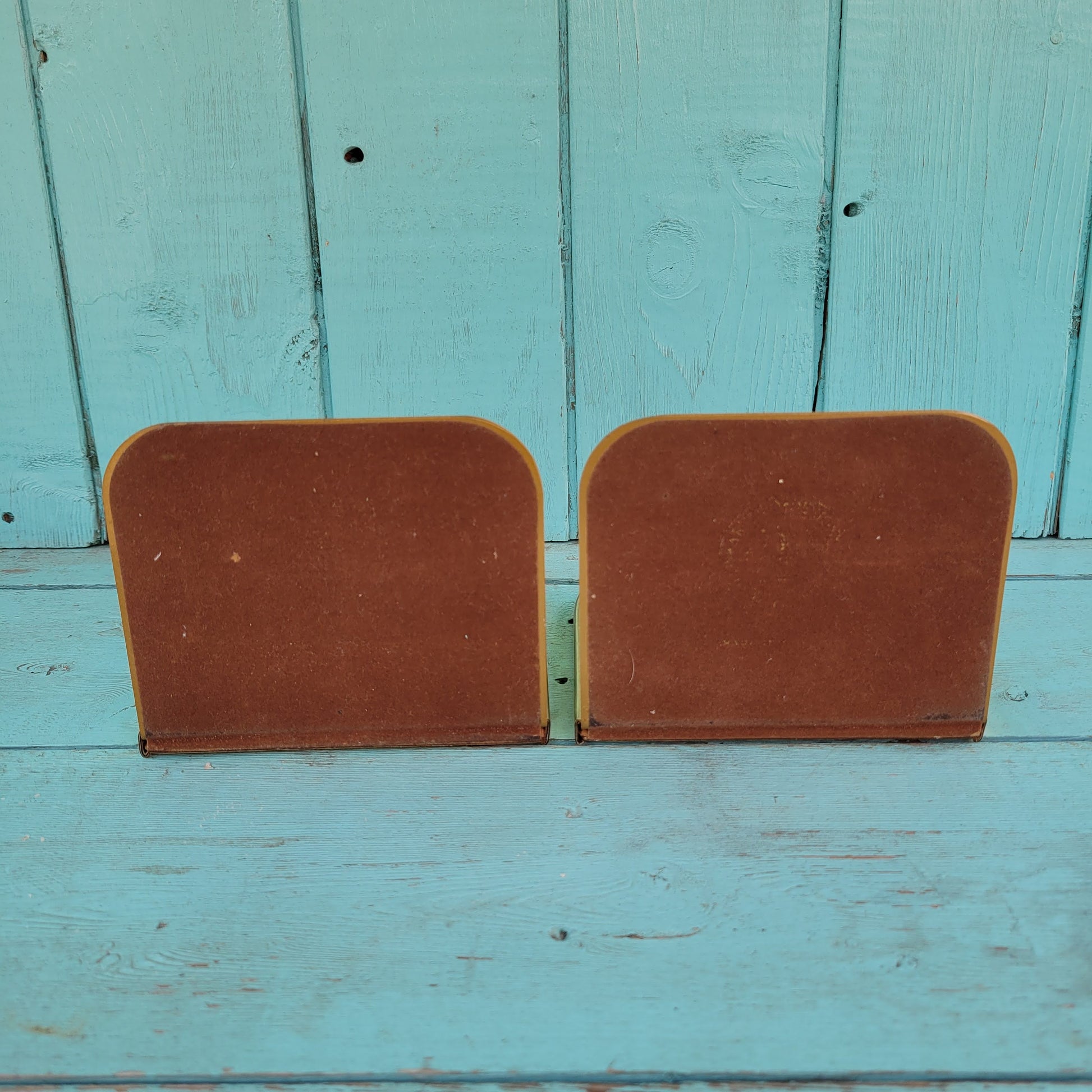 This charming pair of vintage bookends showcases 1970s Chalford Glos Arnold Design brass-edged frames, each holding a stunning John Gould hummingbird print. Standing around 15.5cm tall, 13cm wide, and 10cm deep, they not only keep your books upright but also bring timeless elegance and intricate natural history detail to any room. Perfect for collectors or anyone who values fine craftsmanship and distinctive decor.