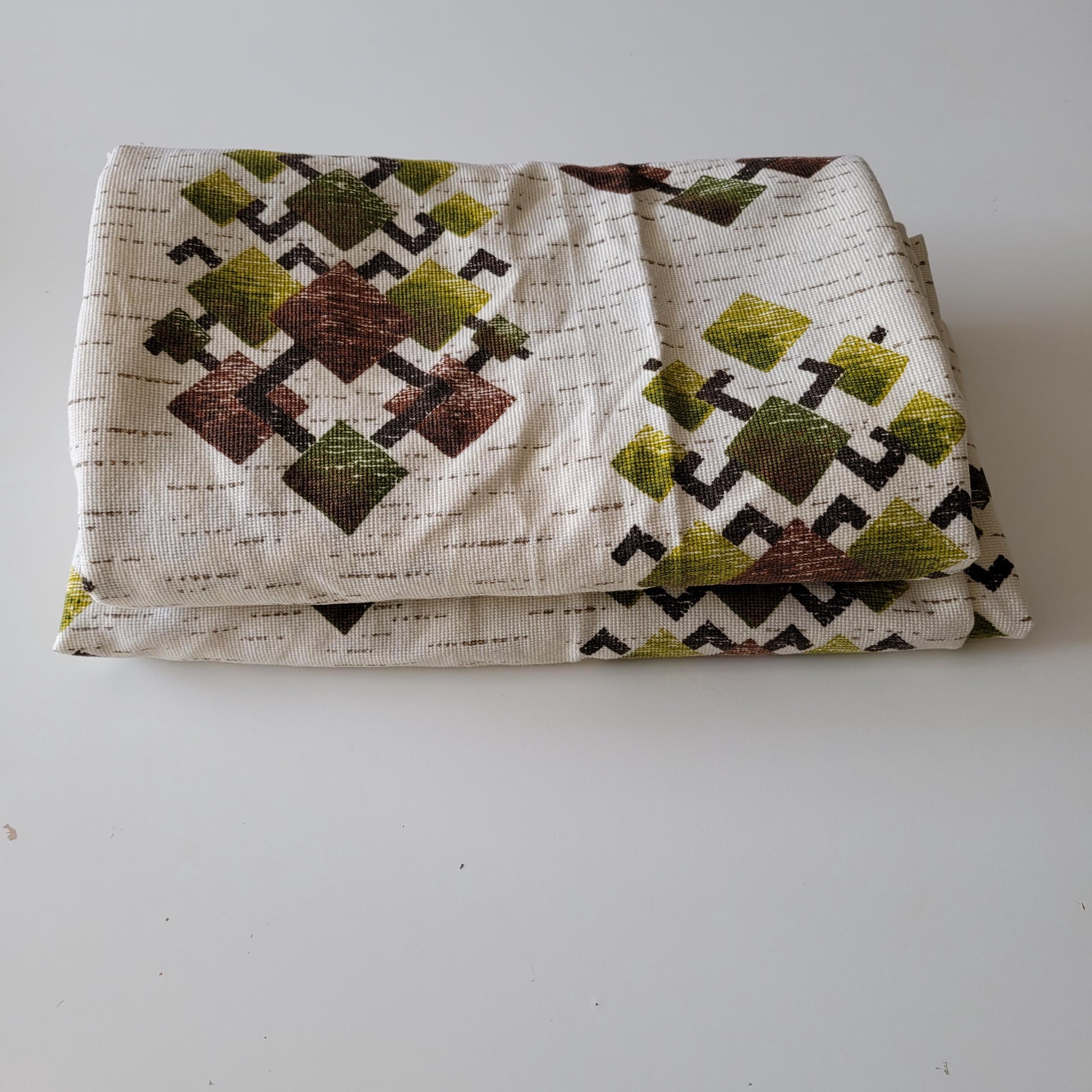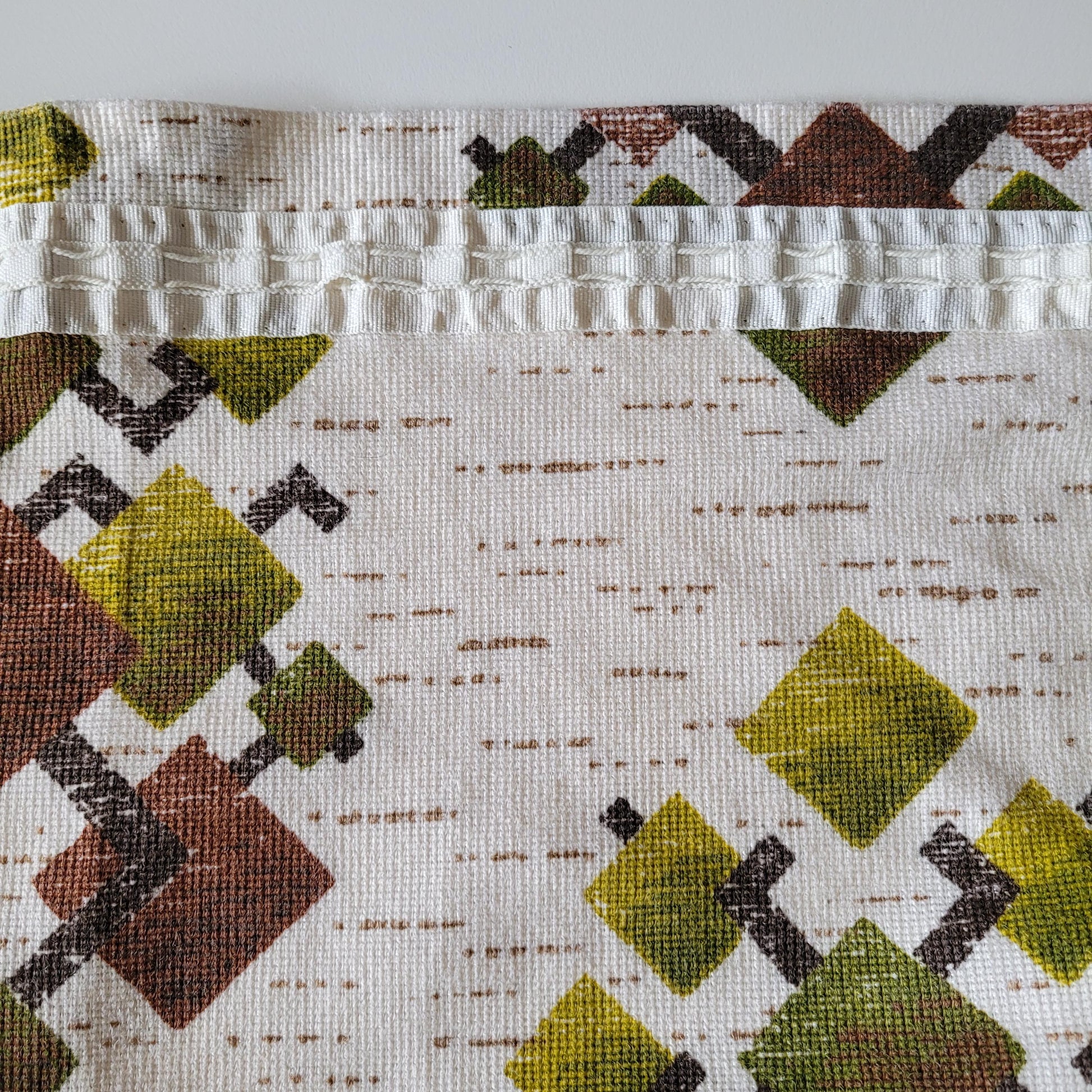 Pair of 1970s geometric abstract print viscose/poly curtains, 40" x 70"