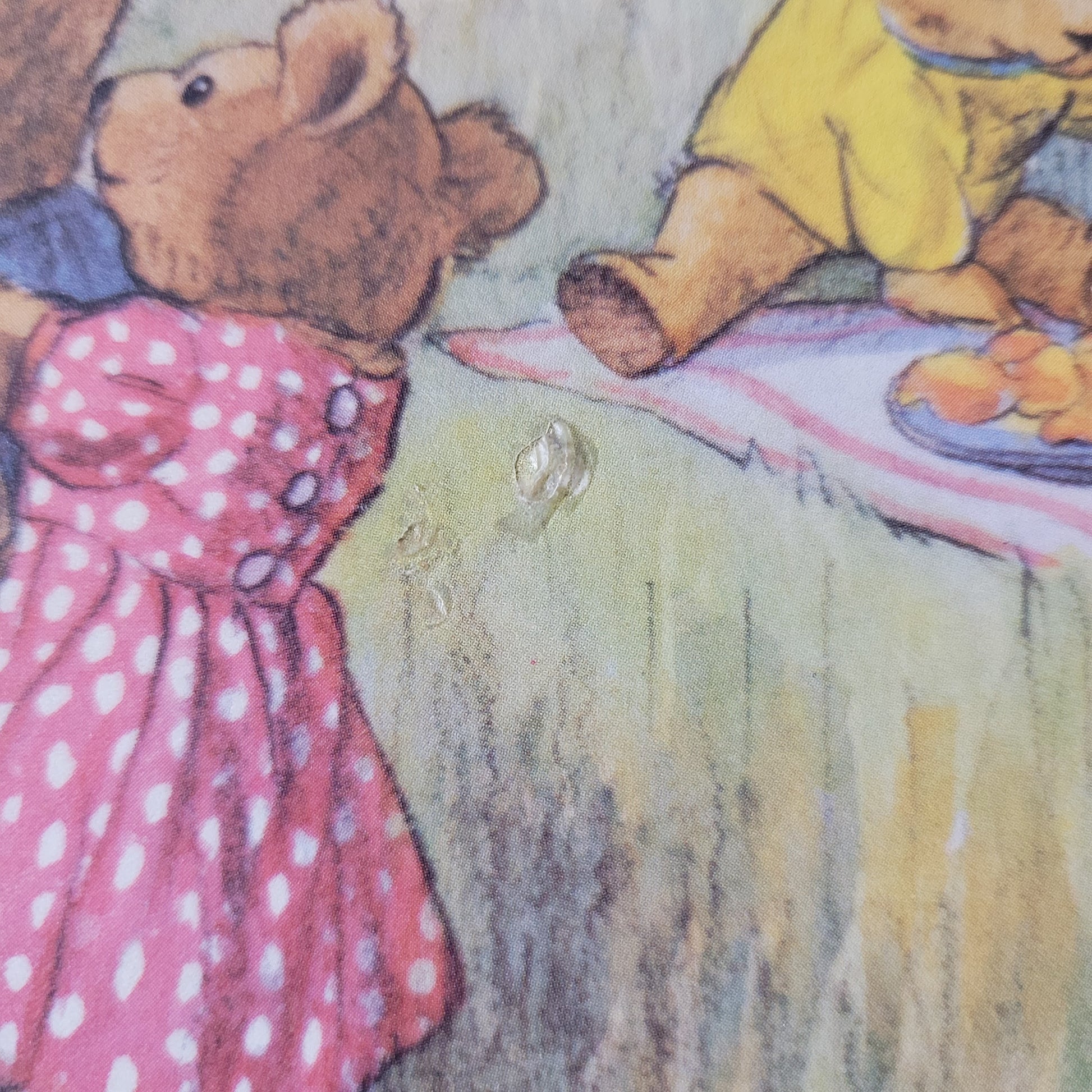 This set of vintage Molly Brett prints, "Teddies Fishing" and "Teddy Bears and Blackberries," is mounted on durable hardboard measuring 33cm by 23.5cm. Showcasing Molly Brett’s delightful and intricate artwork, these prints are ideal for collectors and lovers of classic children’s illustrations. The solid hardboard backing offers lasting protection and makes them easy to display, adding a charming, timeless touch to any room. Don’t miss the chance to own these enchanting pieces that celebrate nostalgic storytelling through art.