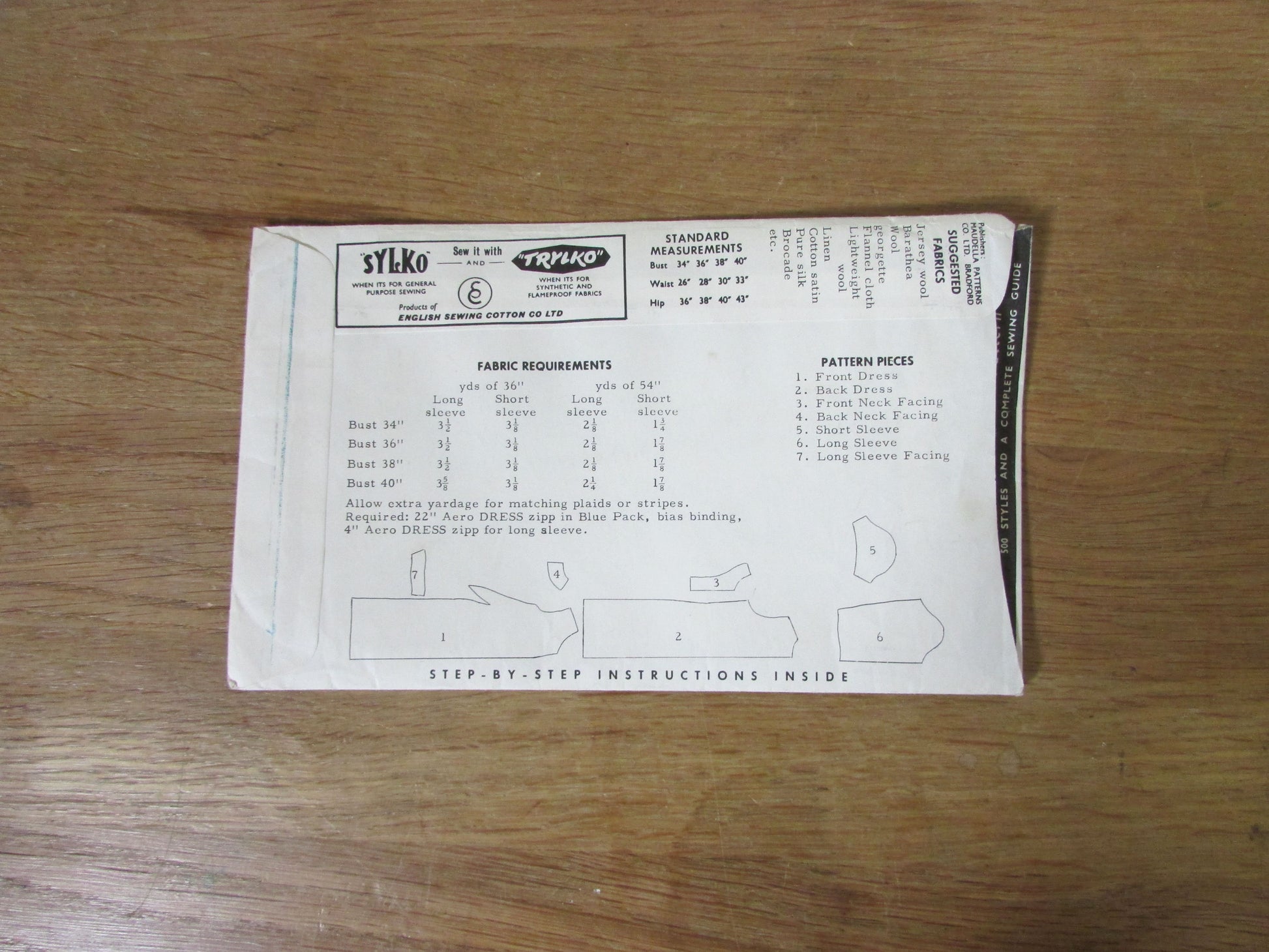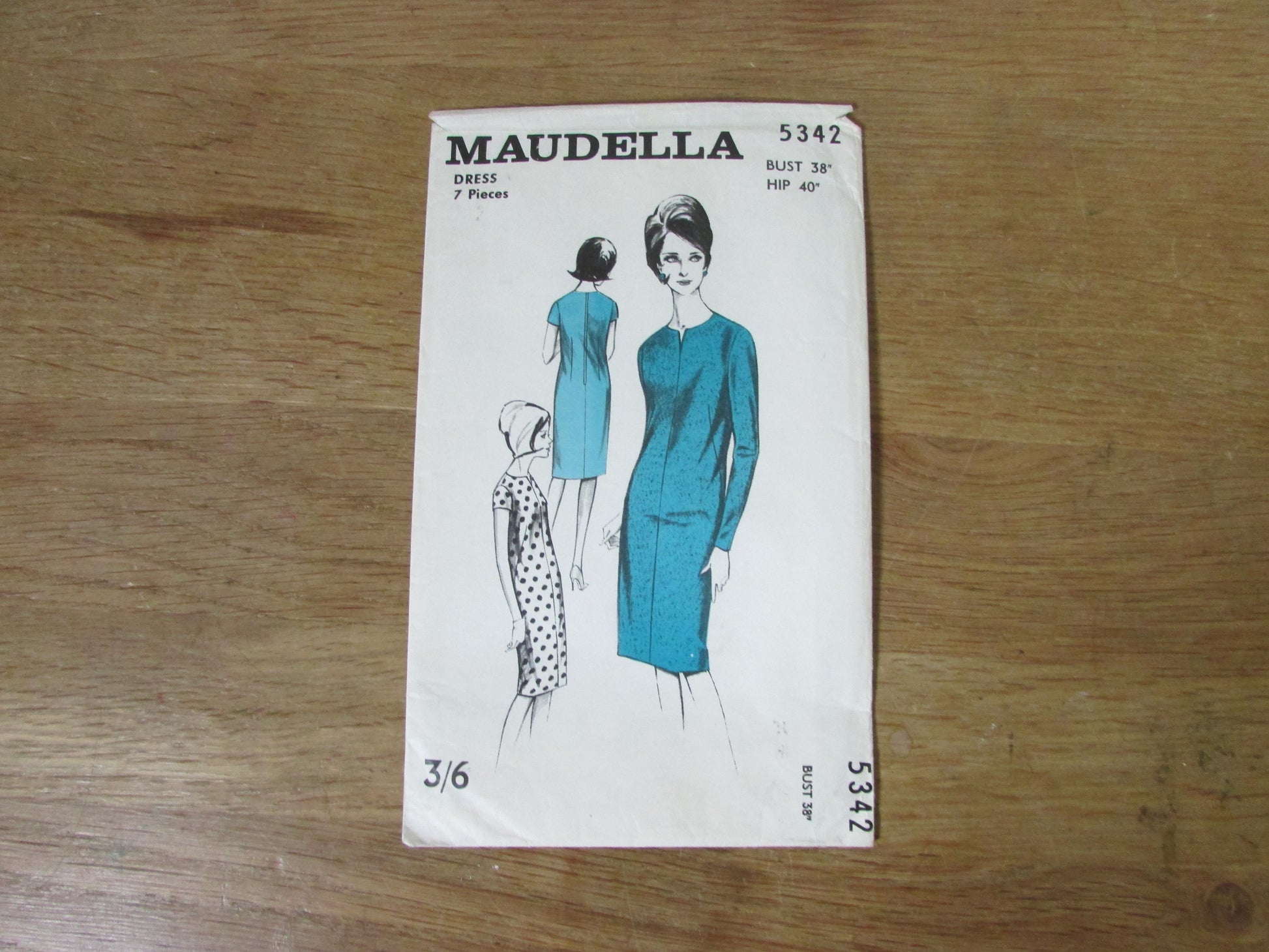 Part cut 1960s Maudella 5342 sewing pattern for long or short-sleeve dress, size 14 (complete)