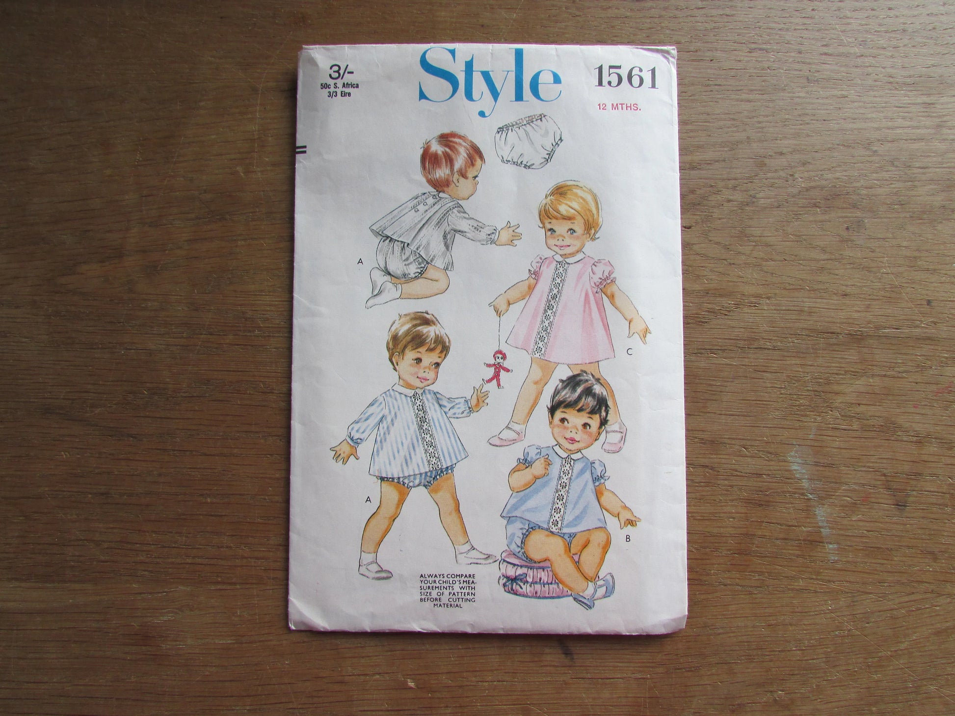 Part cut 1966 Style 1561 sewing pattern for tunic dress with matching pants, size 12 months (complete)