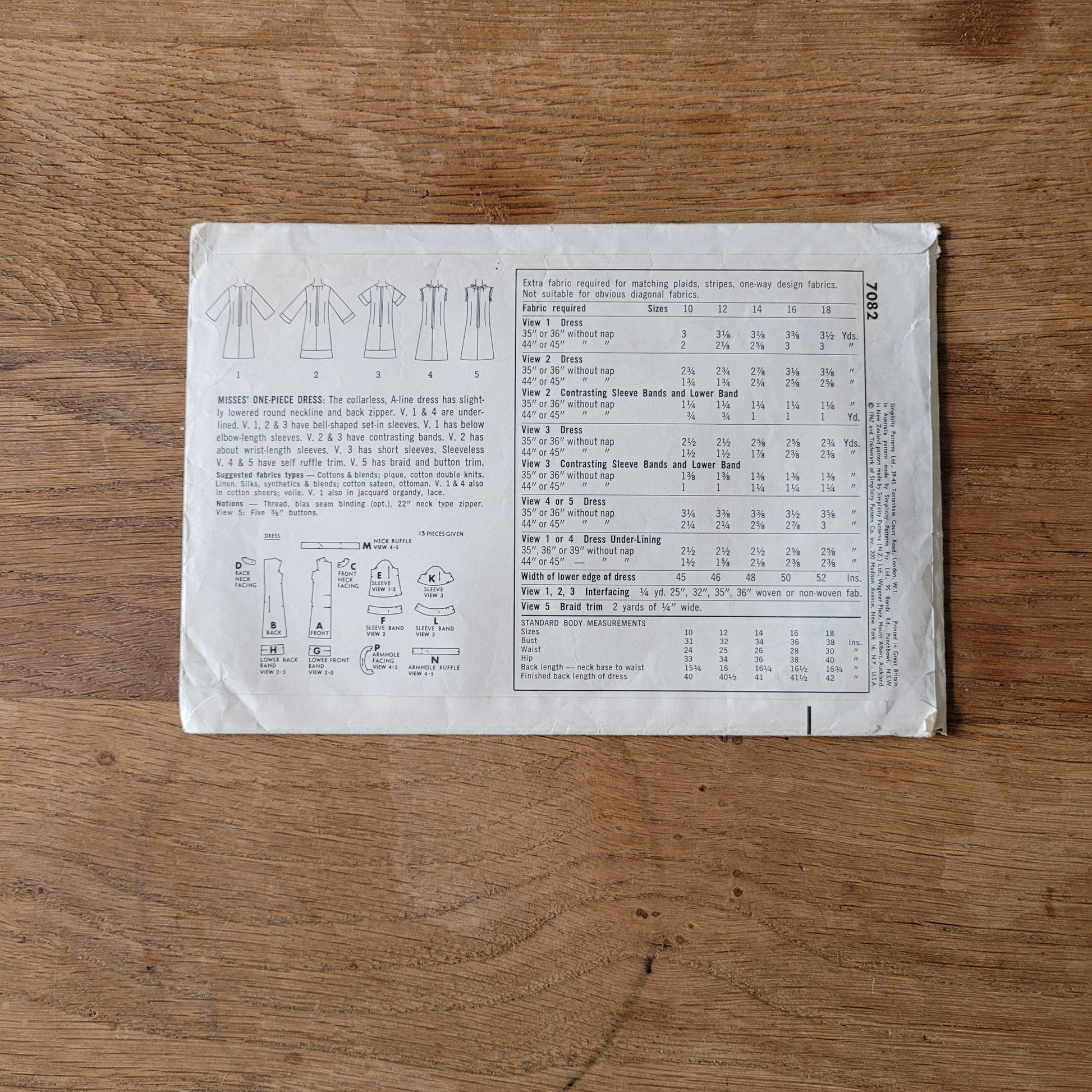 Part cut 1967 Simplicity 7082 sewing pattern for misses' one-piece dress, size 14 (complete)