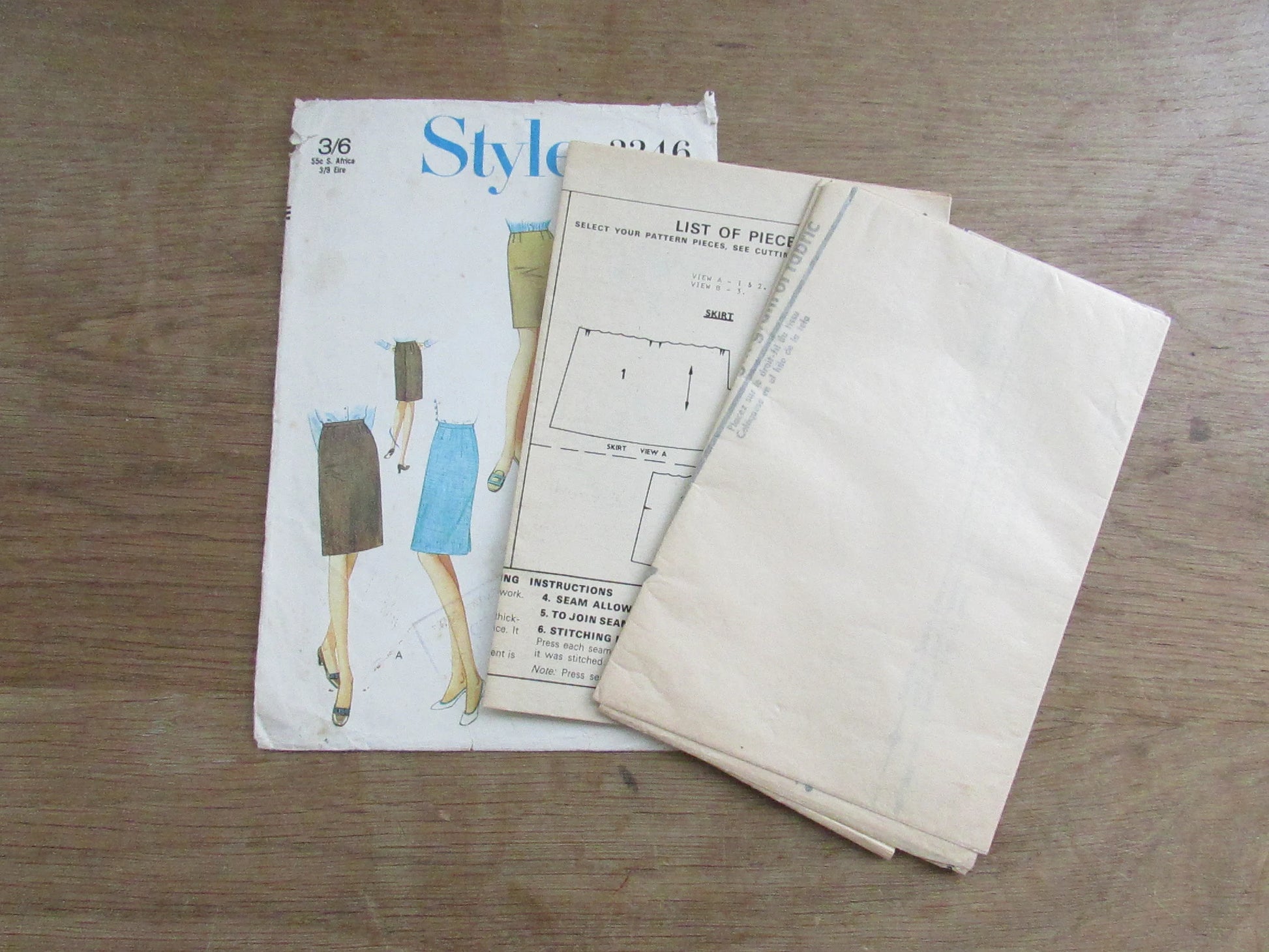 Part cut 1968 Style 2246 sewing pattern for misses' skirt in two lengths, size 10 (complete)