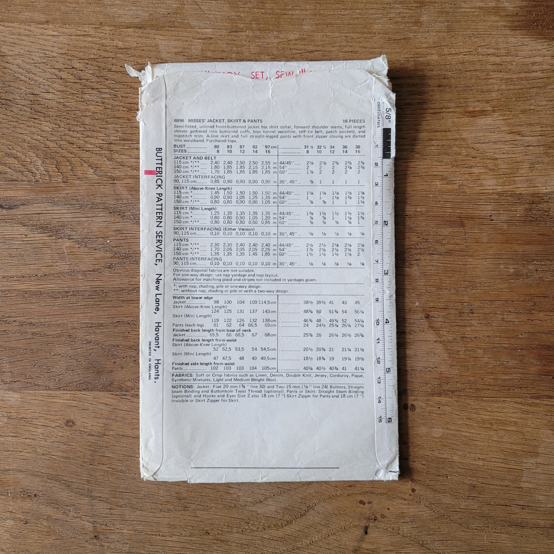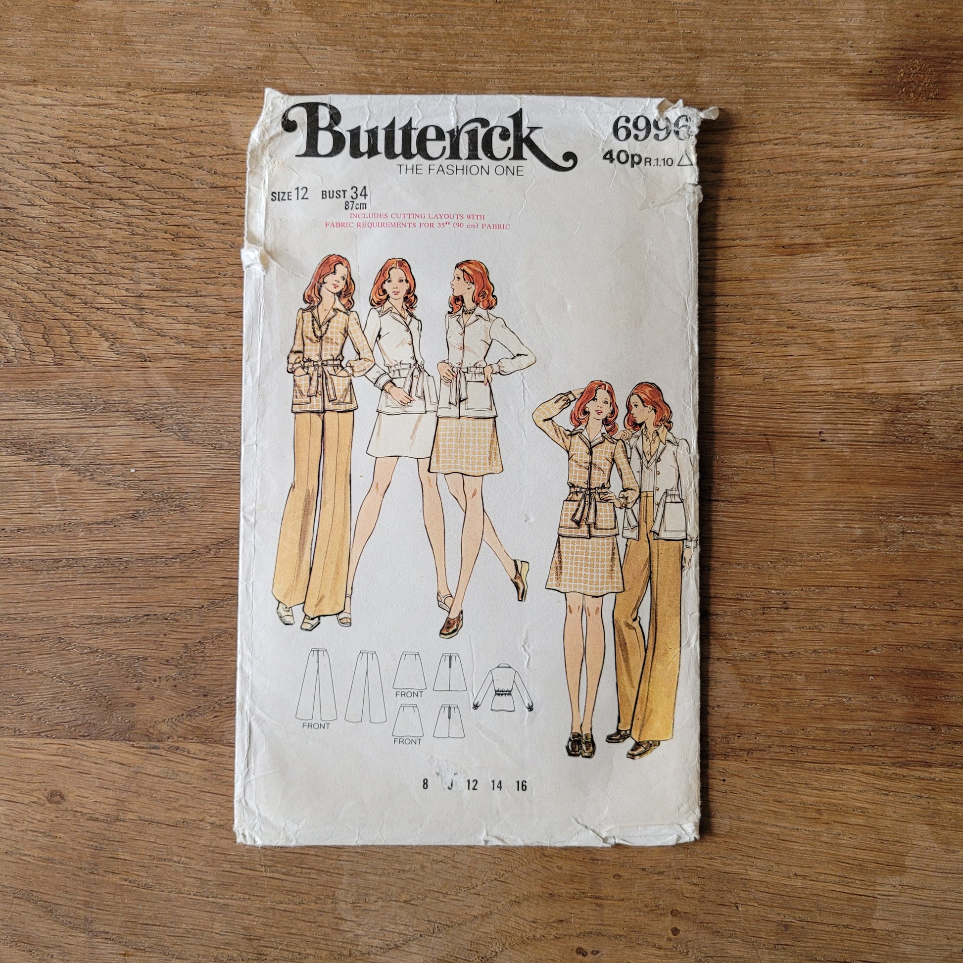 Part cut 1972 Butterick 6996 sewing pattern for misses' jacket, skirt & pants, size 12 (see description below)