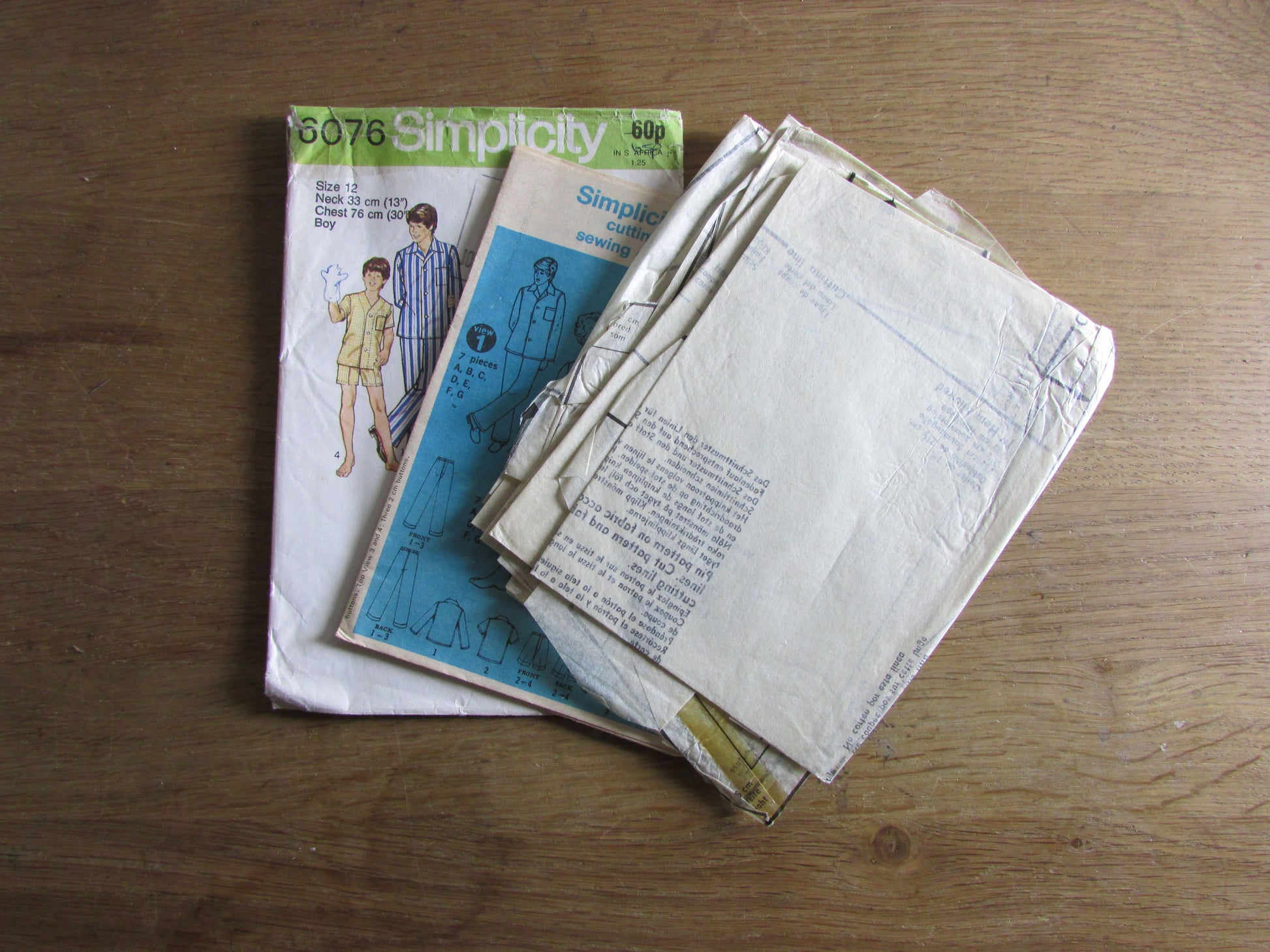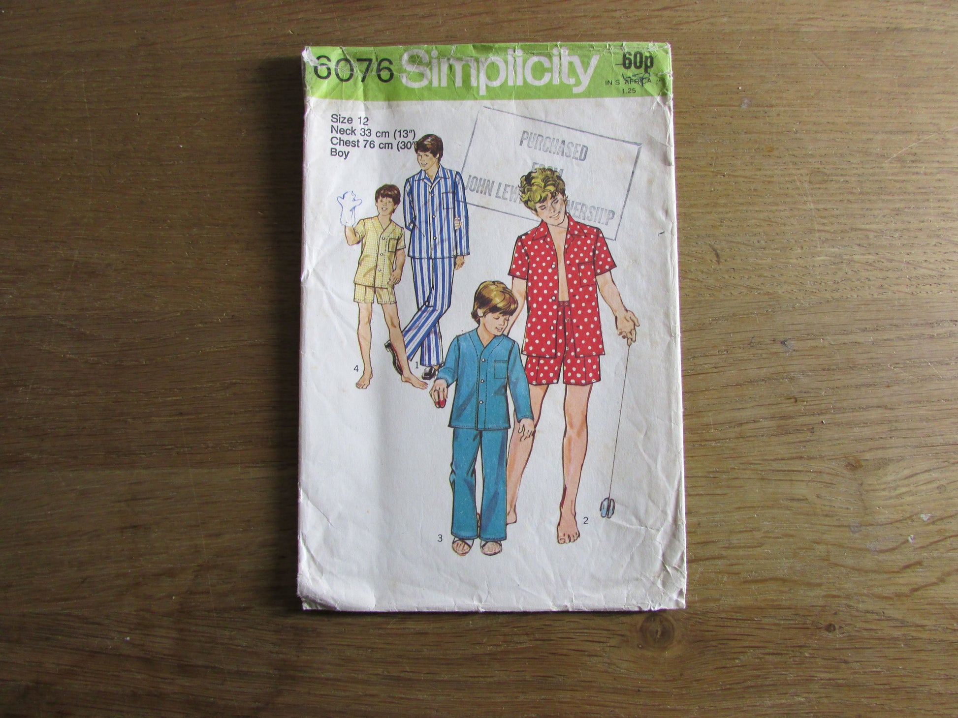 Part cut 1973 Simplicity 6076 sewing pattern for boys' & teen-boys' pajamas, size 12 (complete)
