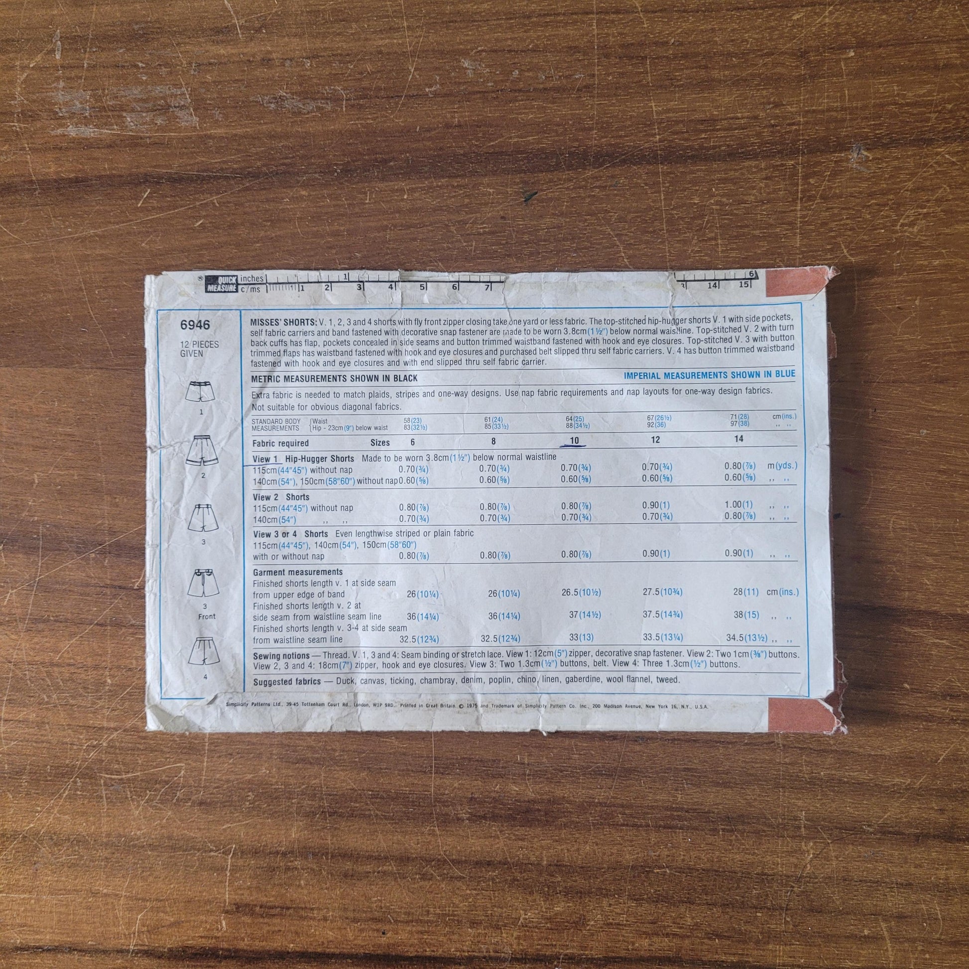 Part cut 1975 Simplicity 6946 sewing pattern for one-metre shorts, size 10 (see description below)
