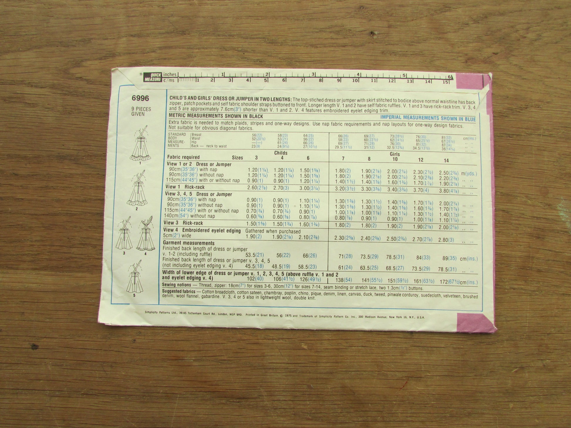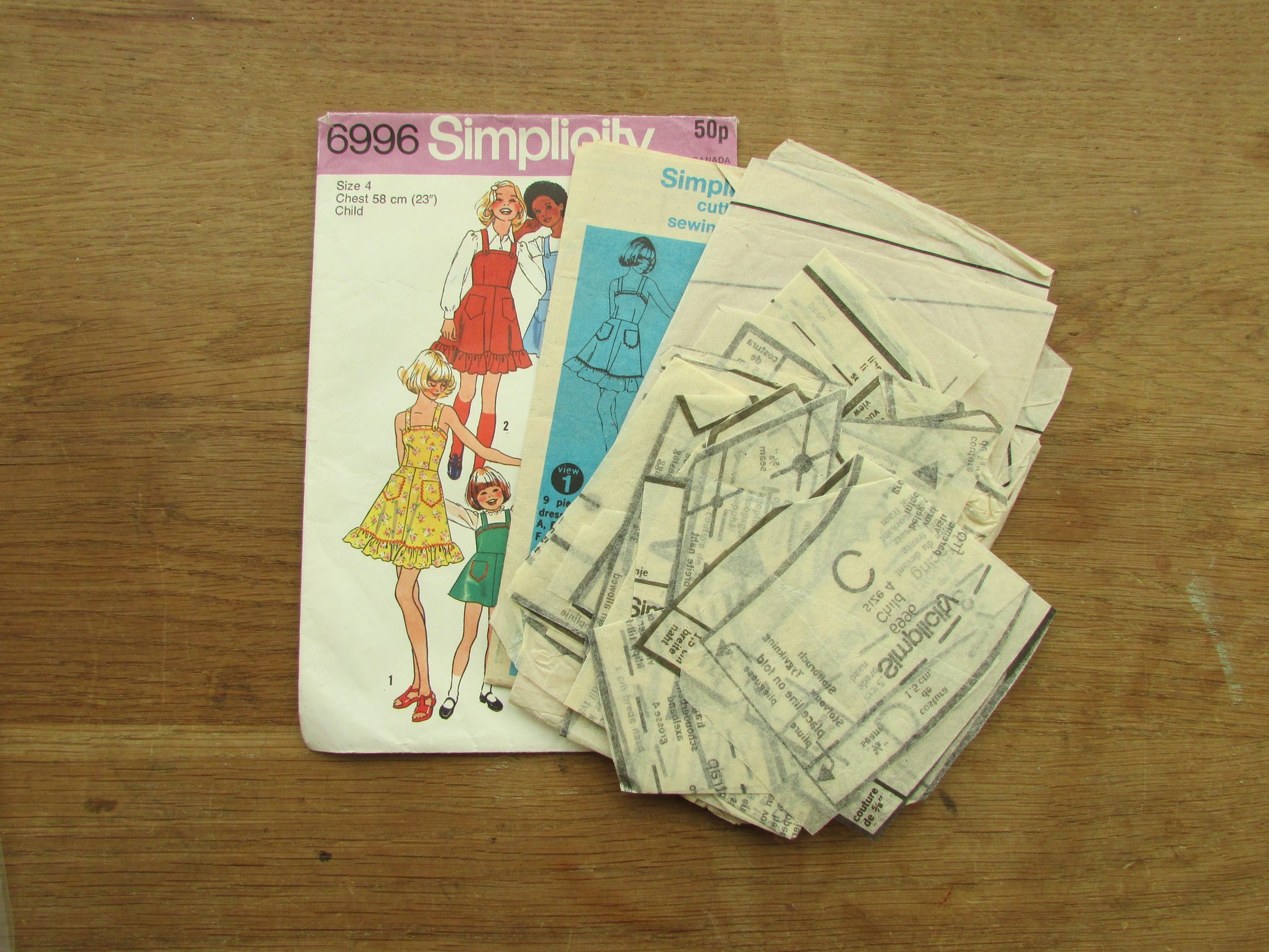 Part cut 1975 Simplicity 6996 sewing pattern for child's & girls' dress or jumper, size 4 (complete)