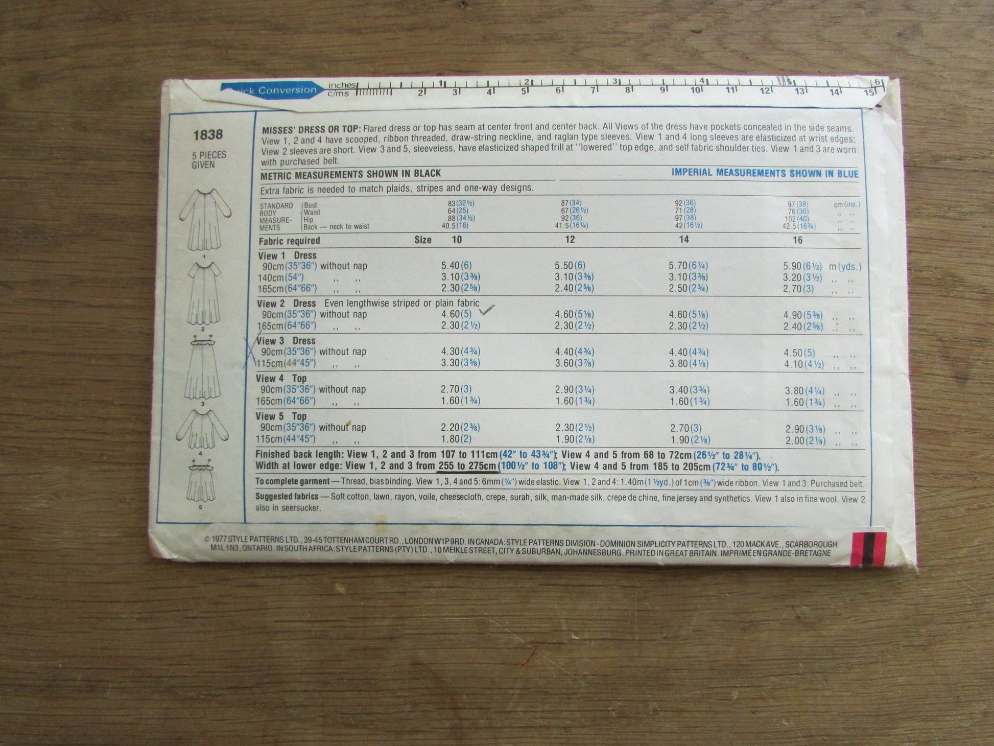 Part cut 1977 Style 1838 sewing pattern for misses' flared dress or top, size 10 (complete)