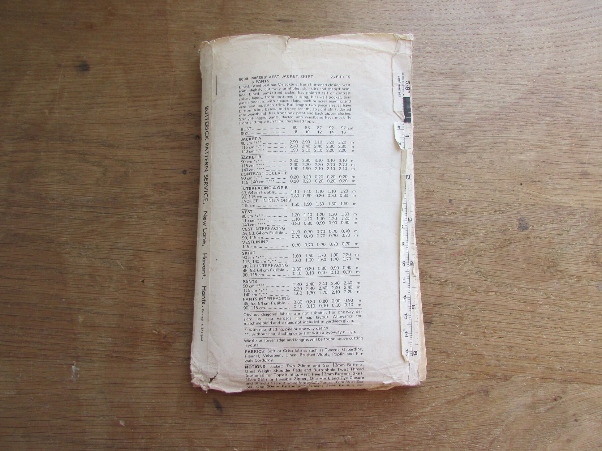 Part cut 1978 Butterick 5090 Rena Rowan sewing pattern for misses' vest, jacket, skirt & pants, size 10 (see description below)