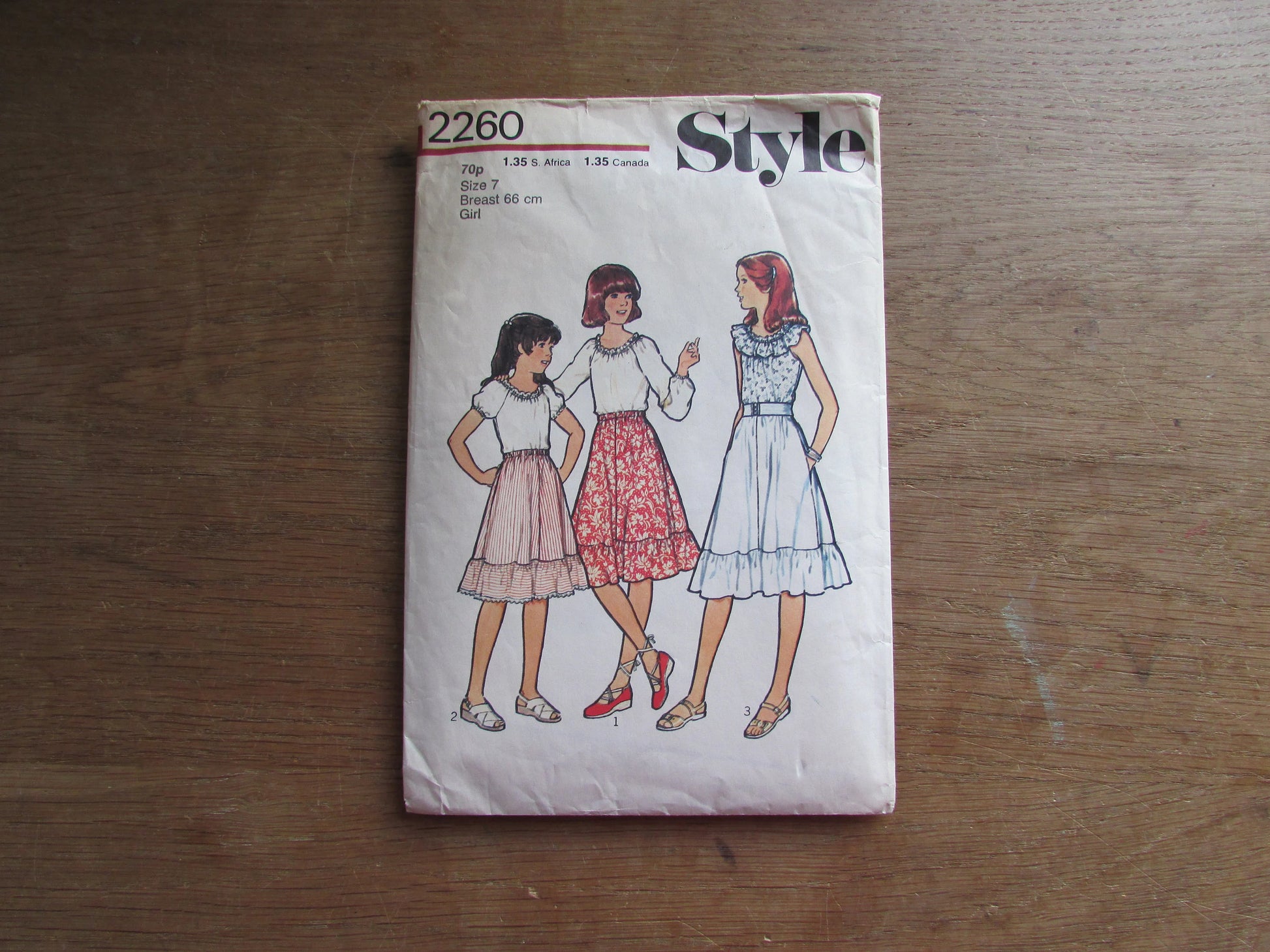 Part cut 1978 Style 2260 sewing pattern for girls' top & skirt, size 7 (complete, see description below)