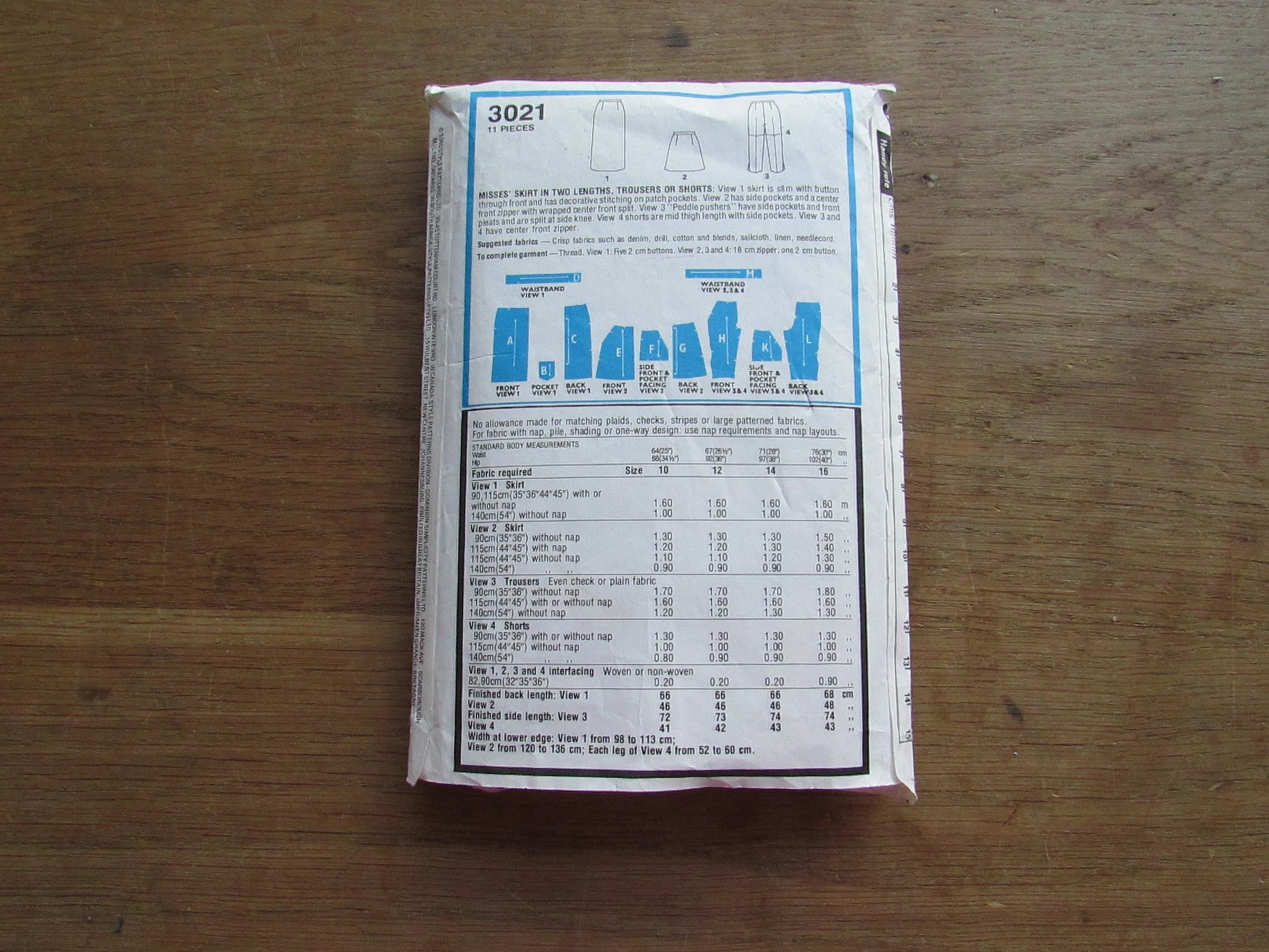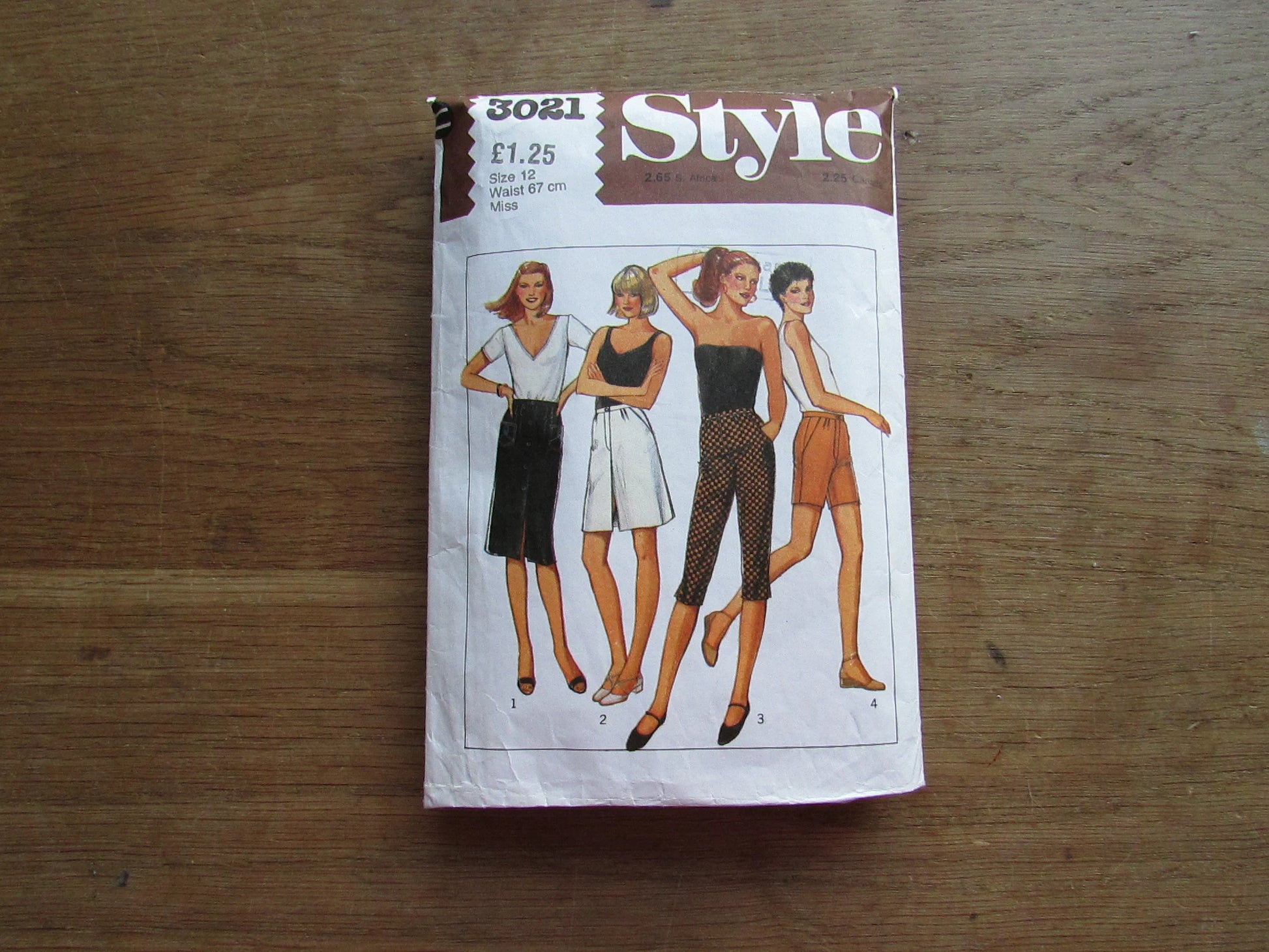 Part cut 1980 Style 3021 sewing pattern for misses' skirt, trousers or shorts, size 12 (complete but missing instructions)