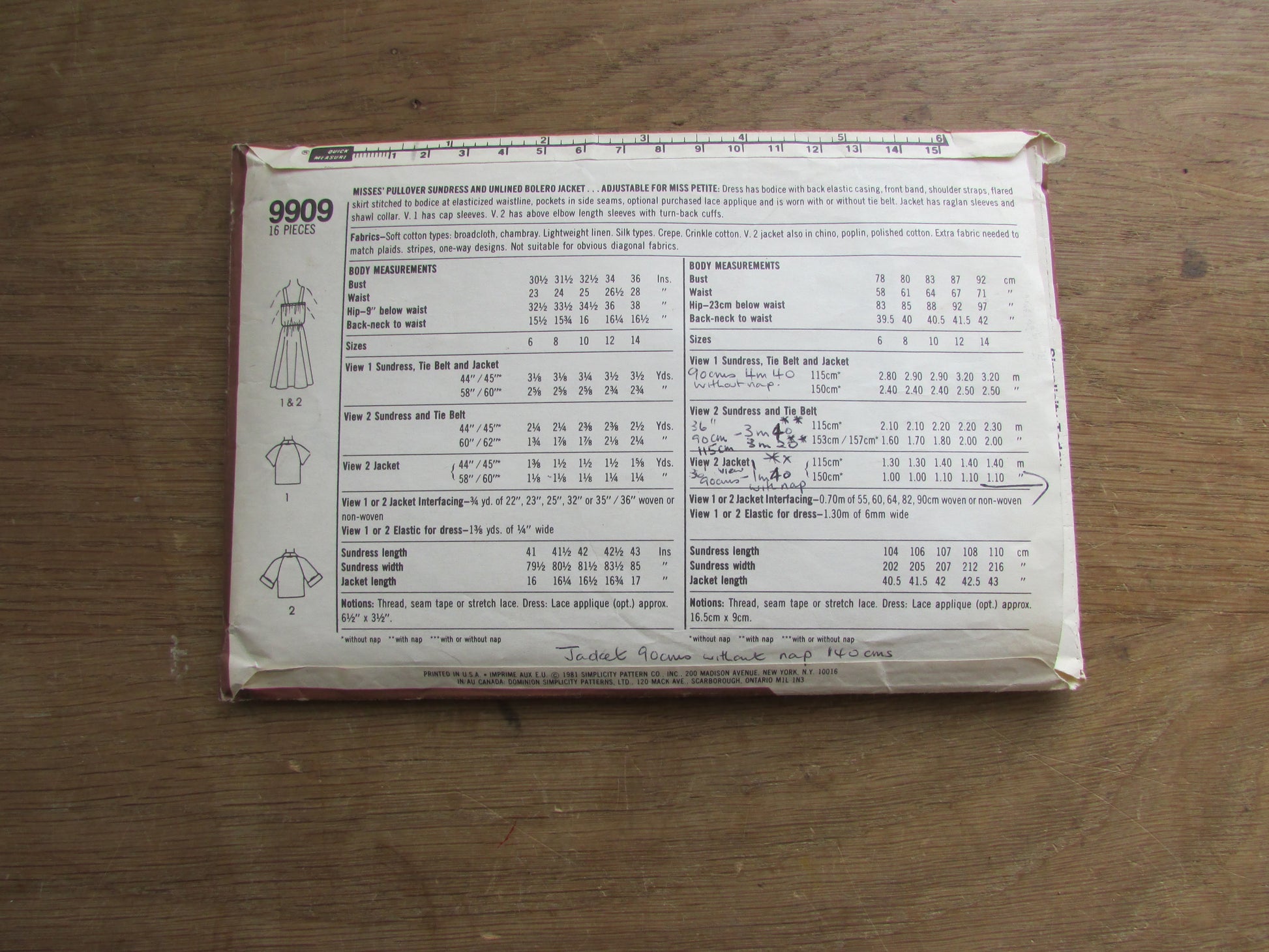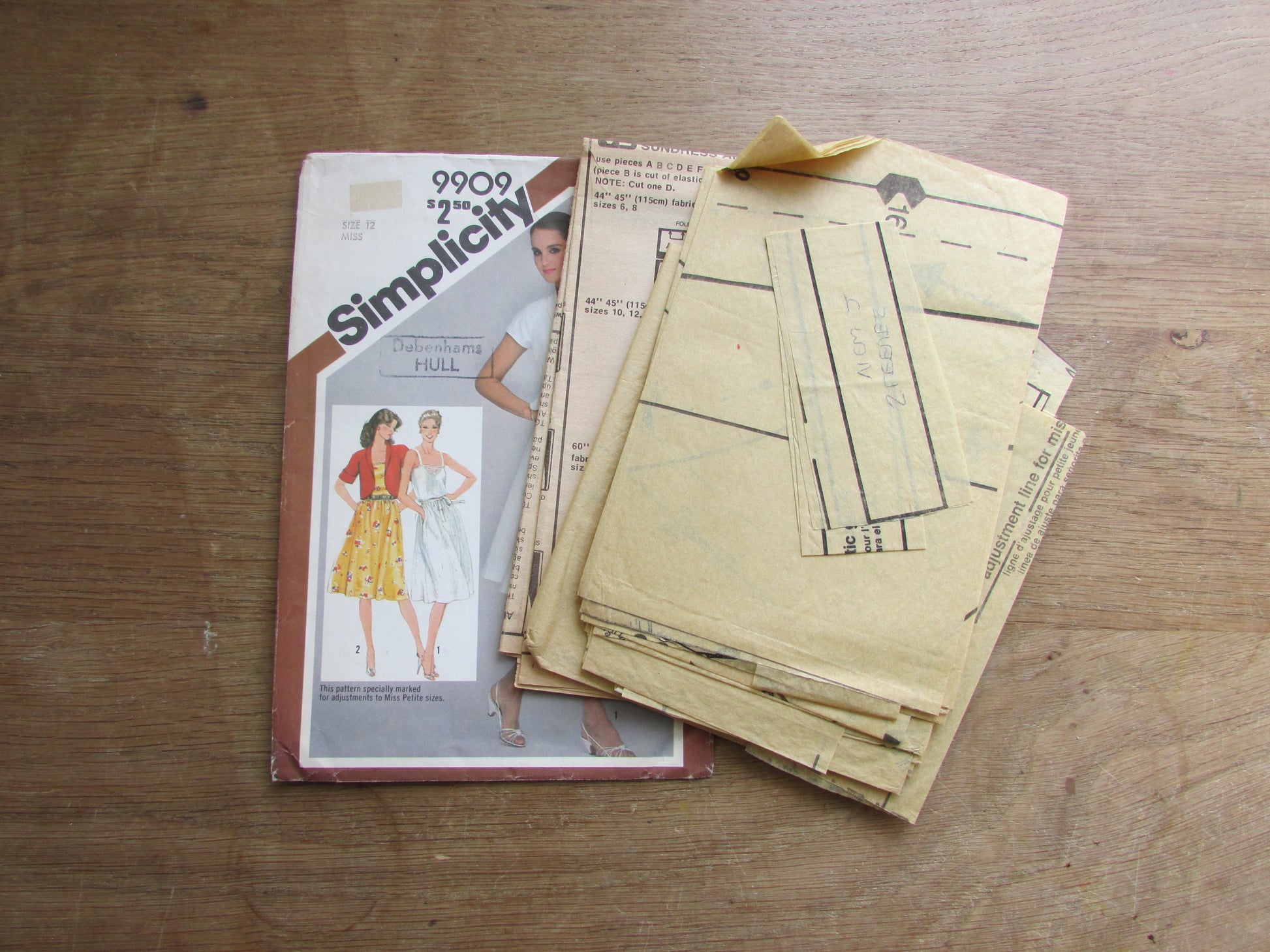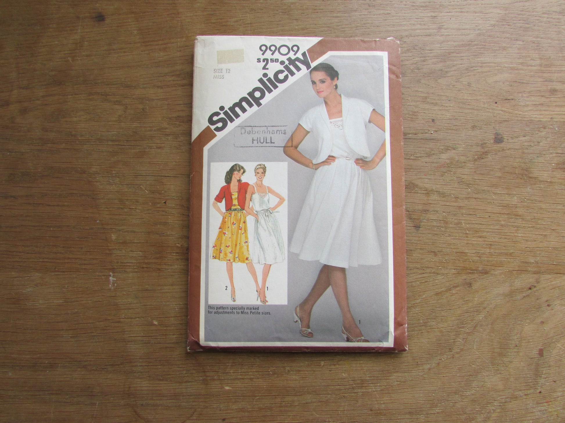 Part cut 1981 Simplicity 9909 sewing pattern for misses' pullover sundress, & unlined bolero jacket, size 12 (complete)