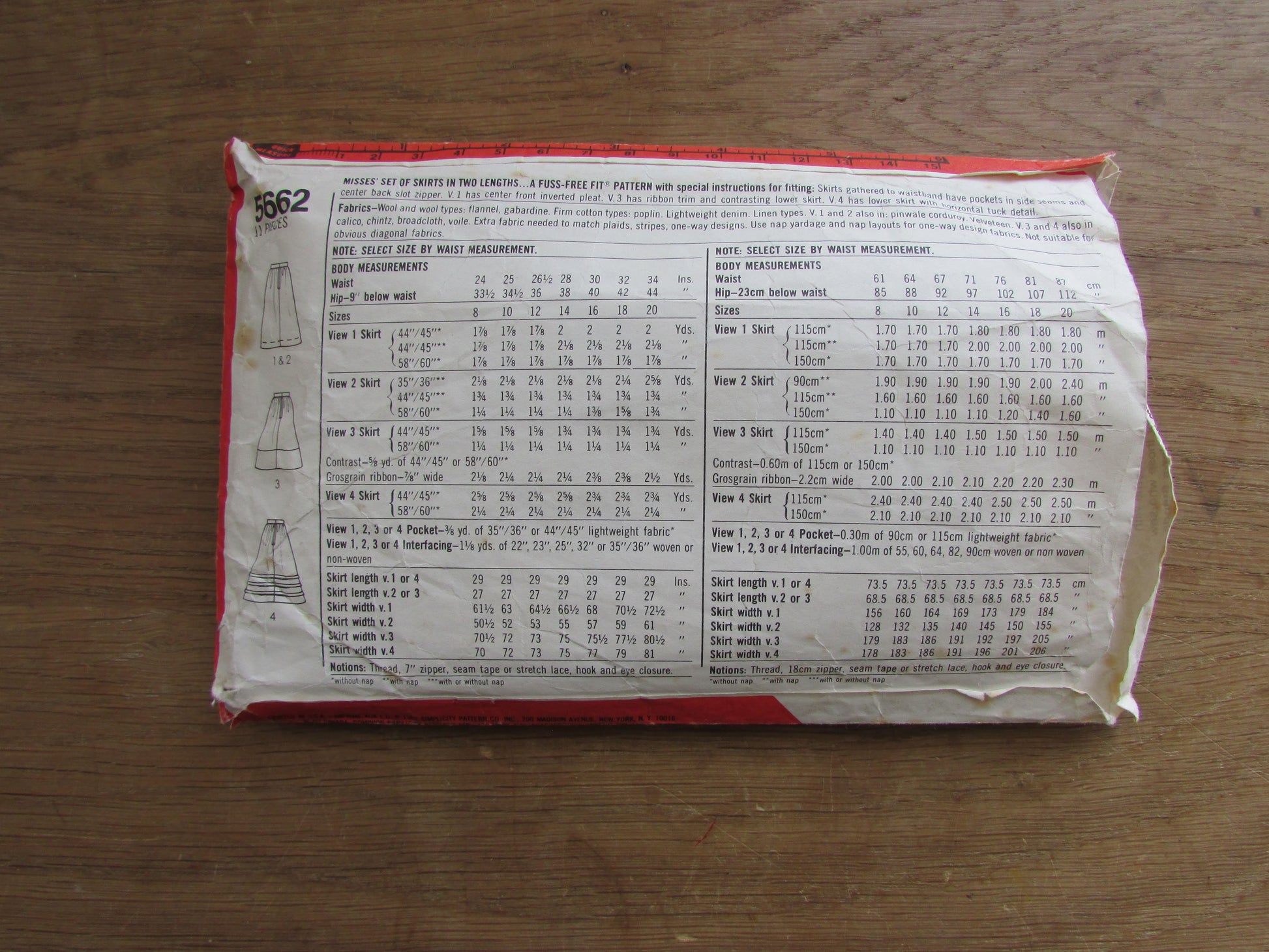 Part cut 1982 Simplicity 5662 sewing pattern for misses' set of skirts , size 14 (complete)