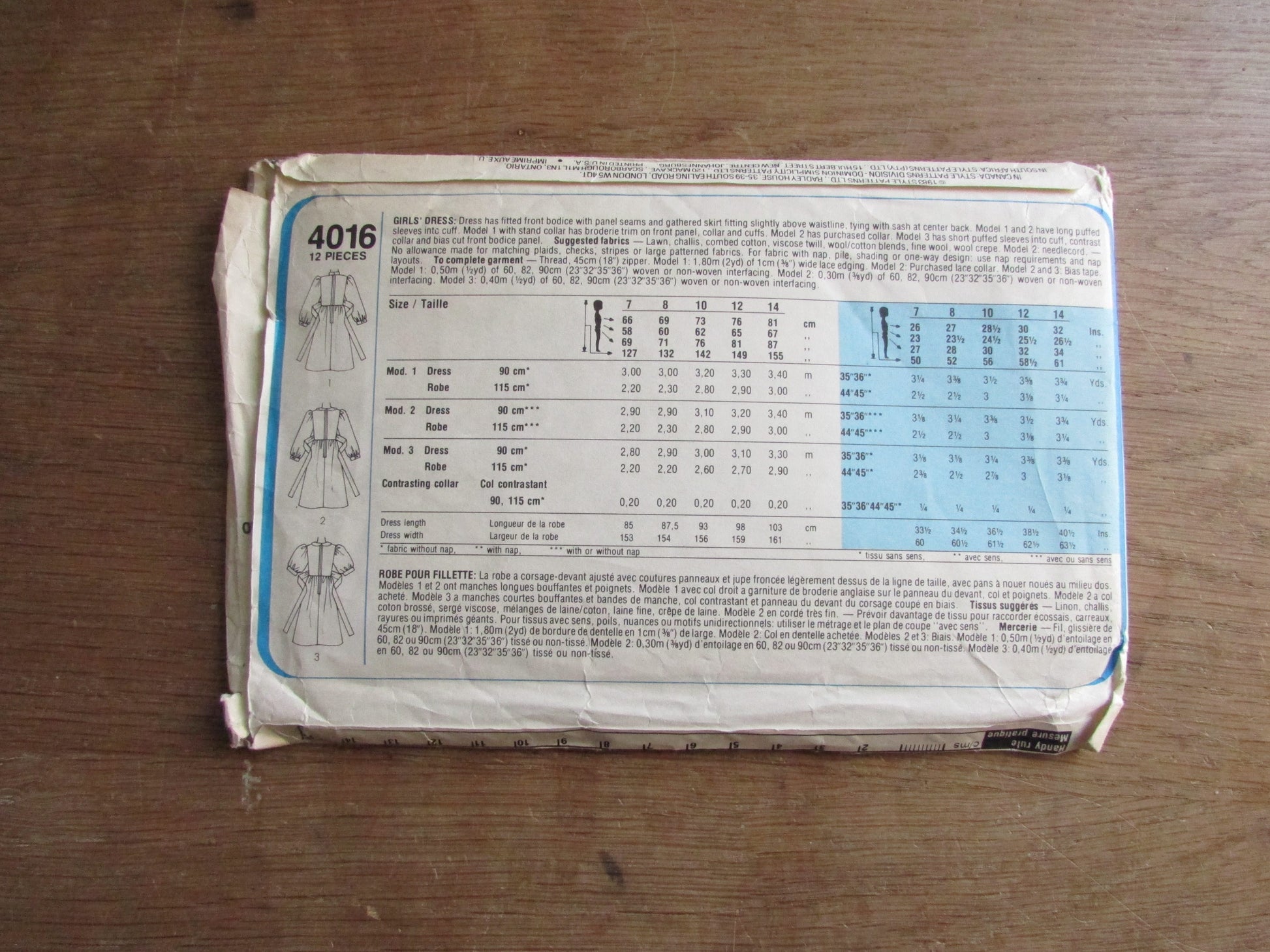 Part cut 1983 Style 4016 sewing pattern for girls' dress, cut to size 12 (complete)