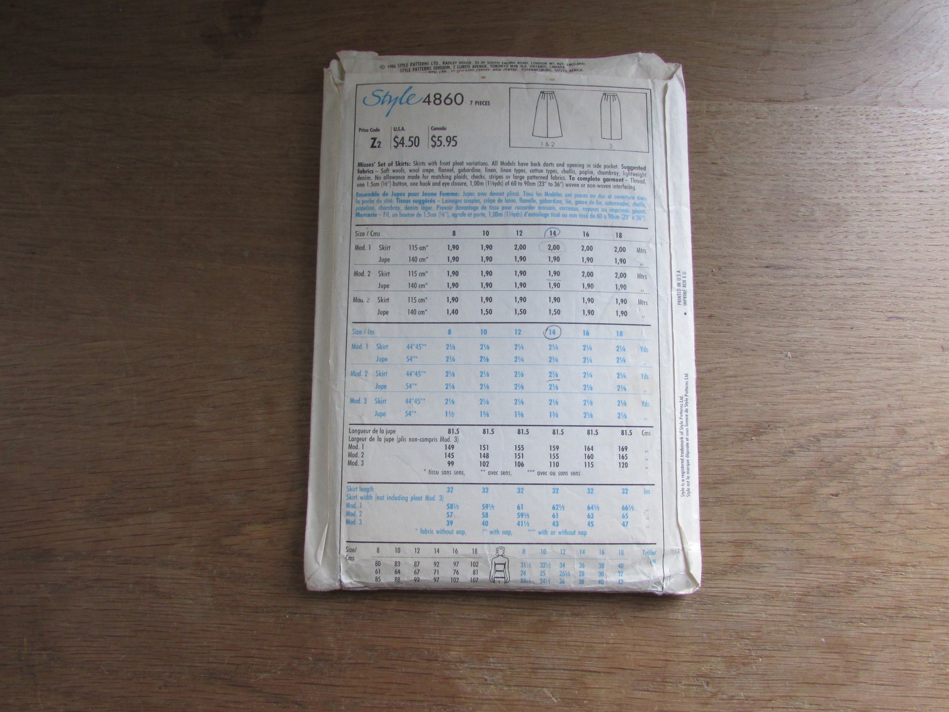 Part cut 1986 Style 4860 sewing pattern for misses' set of skirts, size 14 (complete)