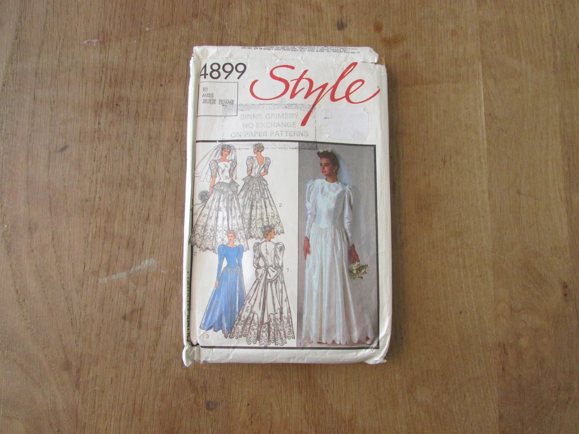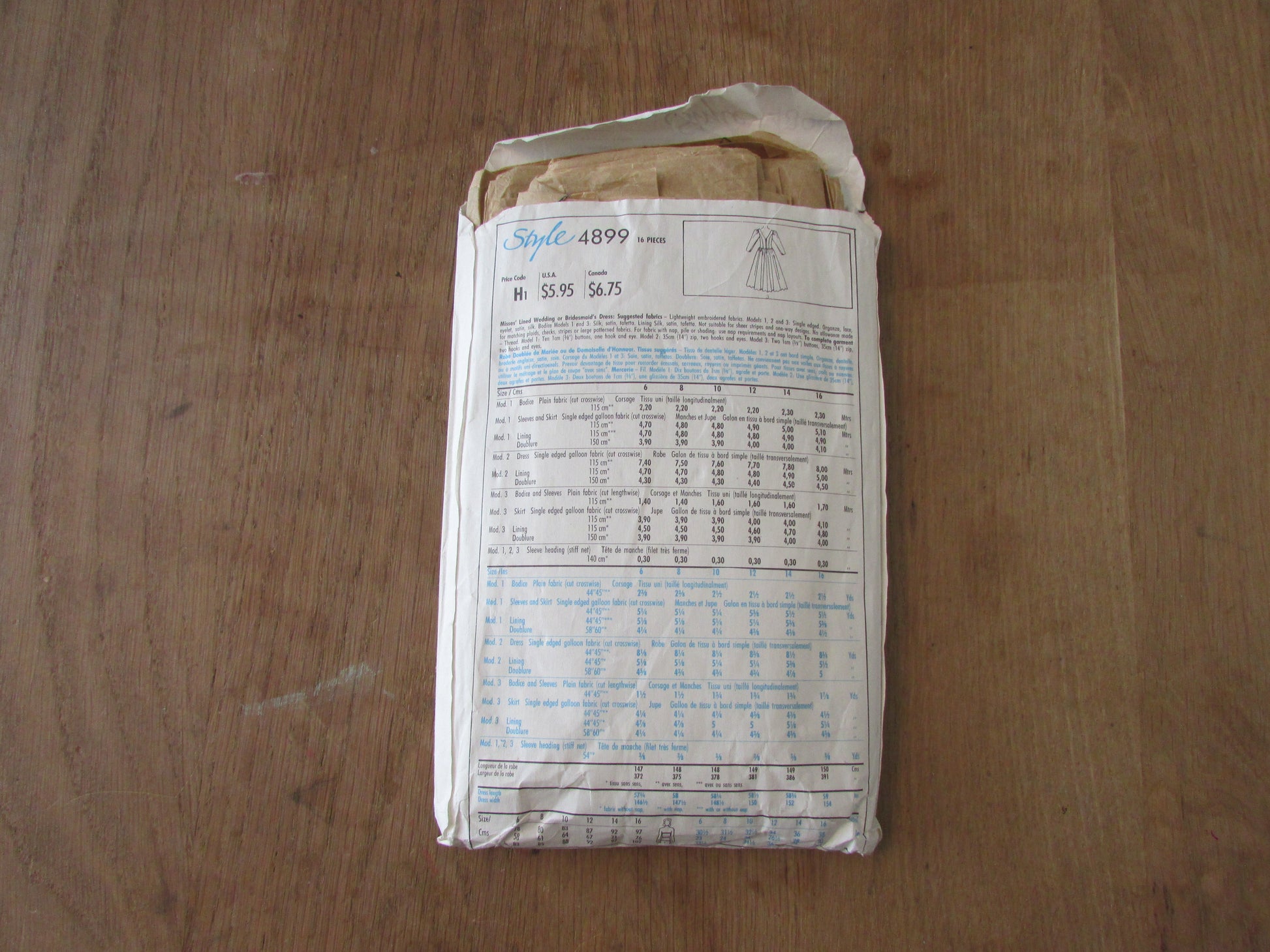 Part cut 1986 Style 4899 sewing pattern for misses' lined wedding or bridesmaid dress, size 10 (complete)
