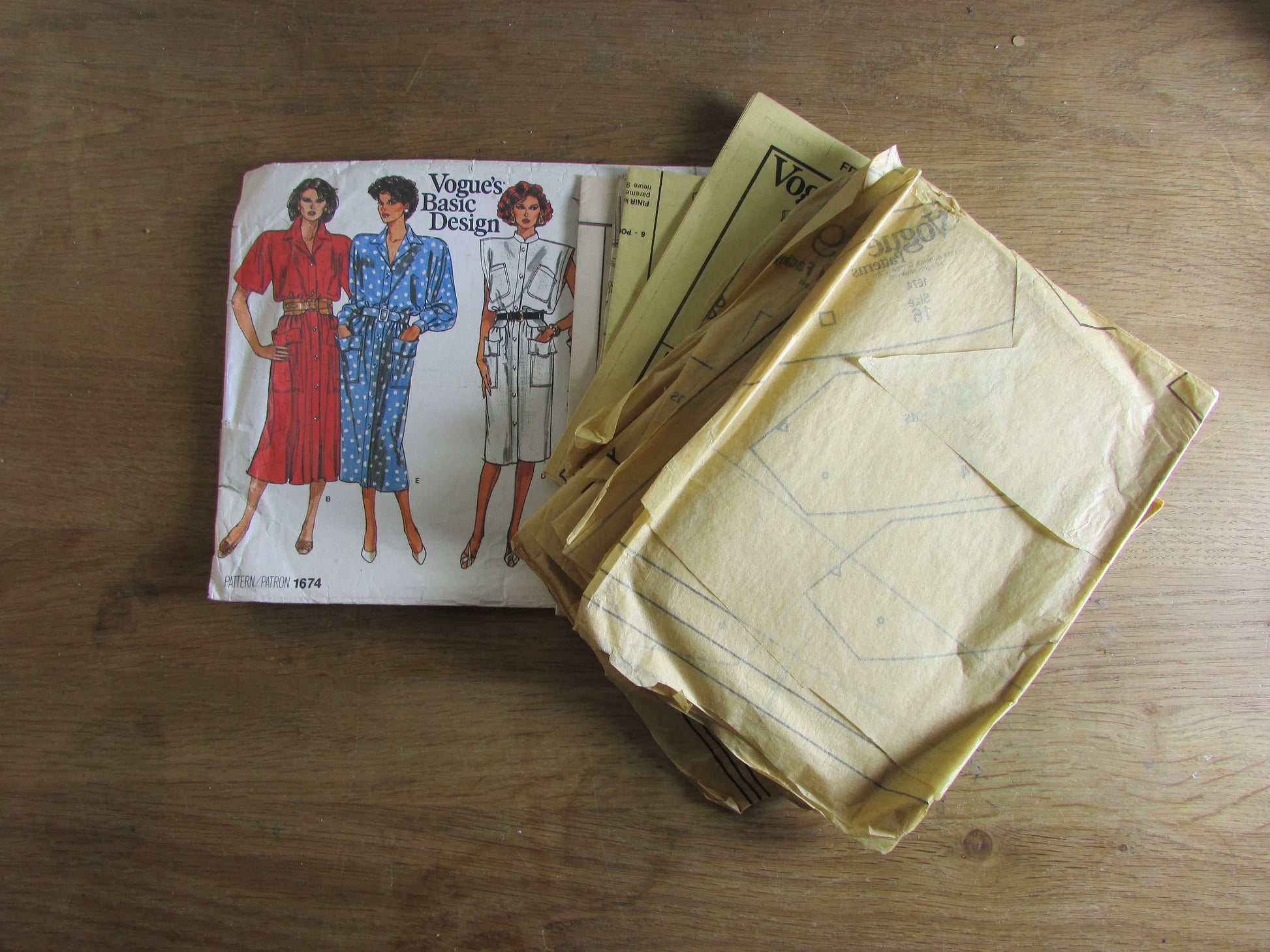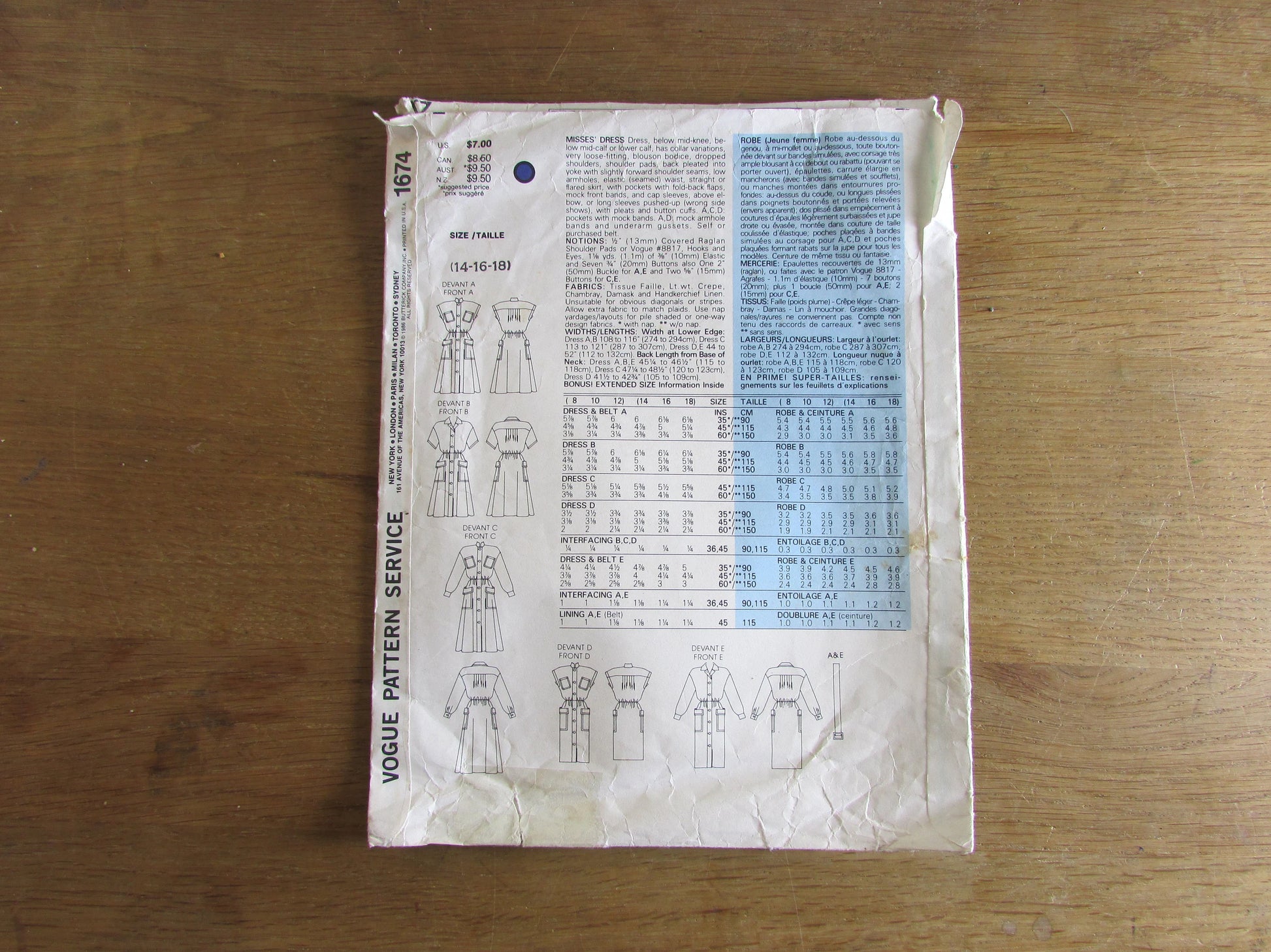 Part cut 1986 Vogue 1674 sewing pattern for misses' dresses, sizes 14 to 18 (part cut to size 18, complete)