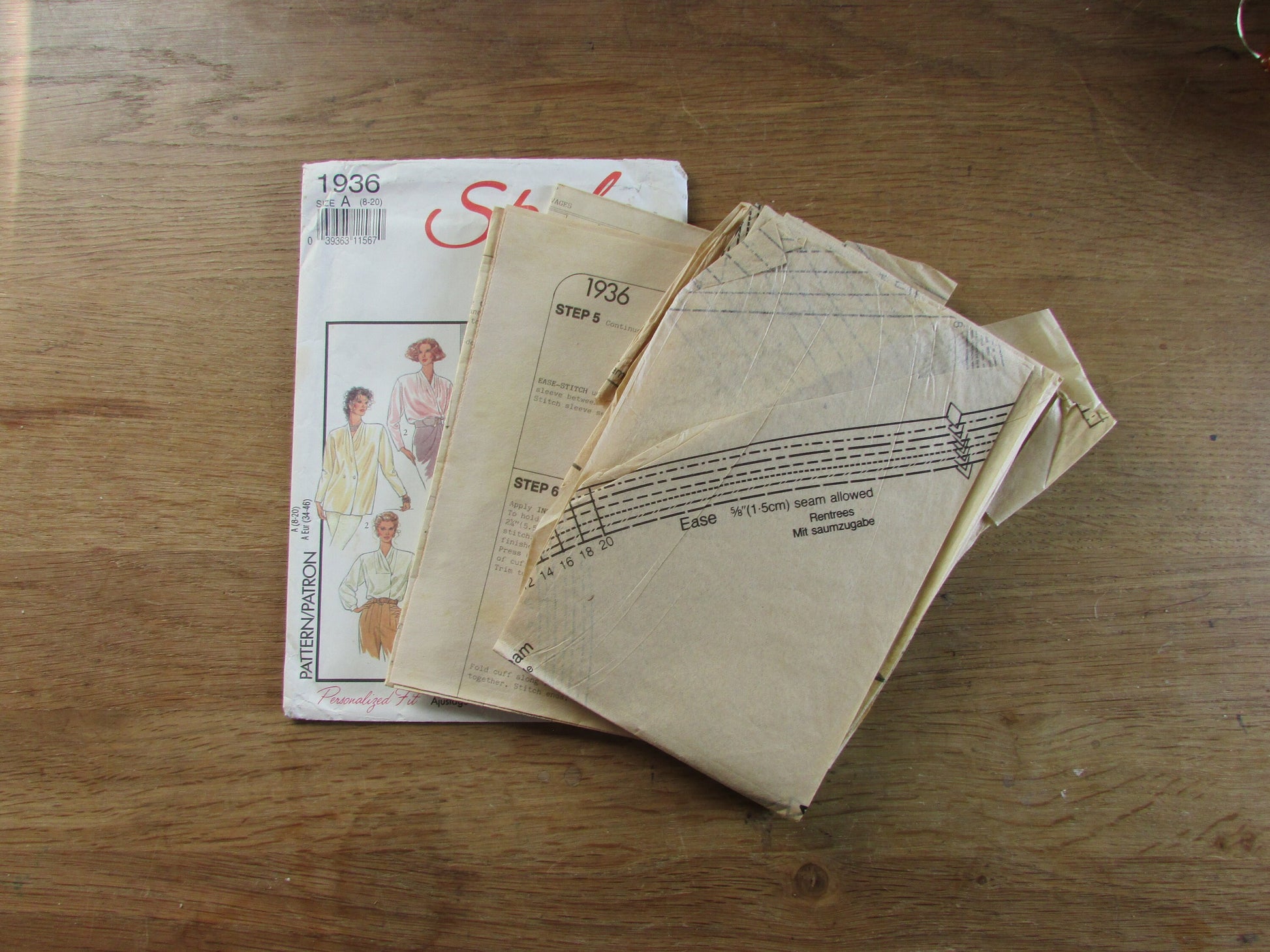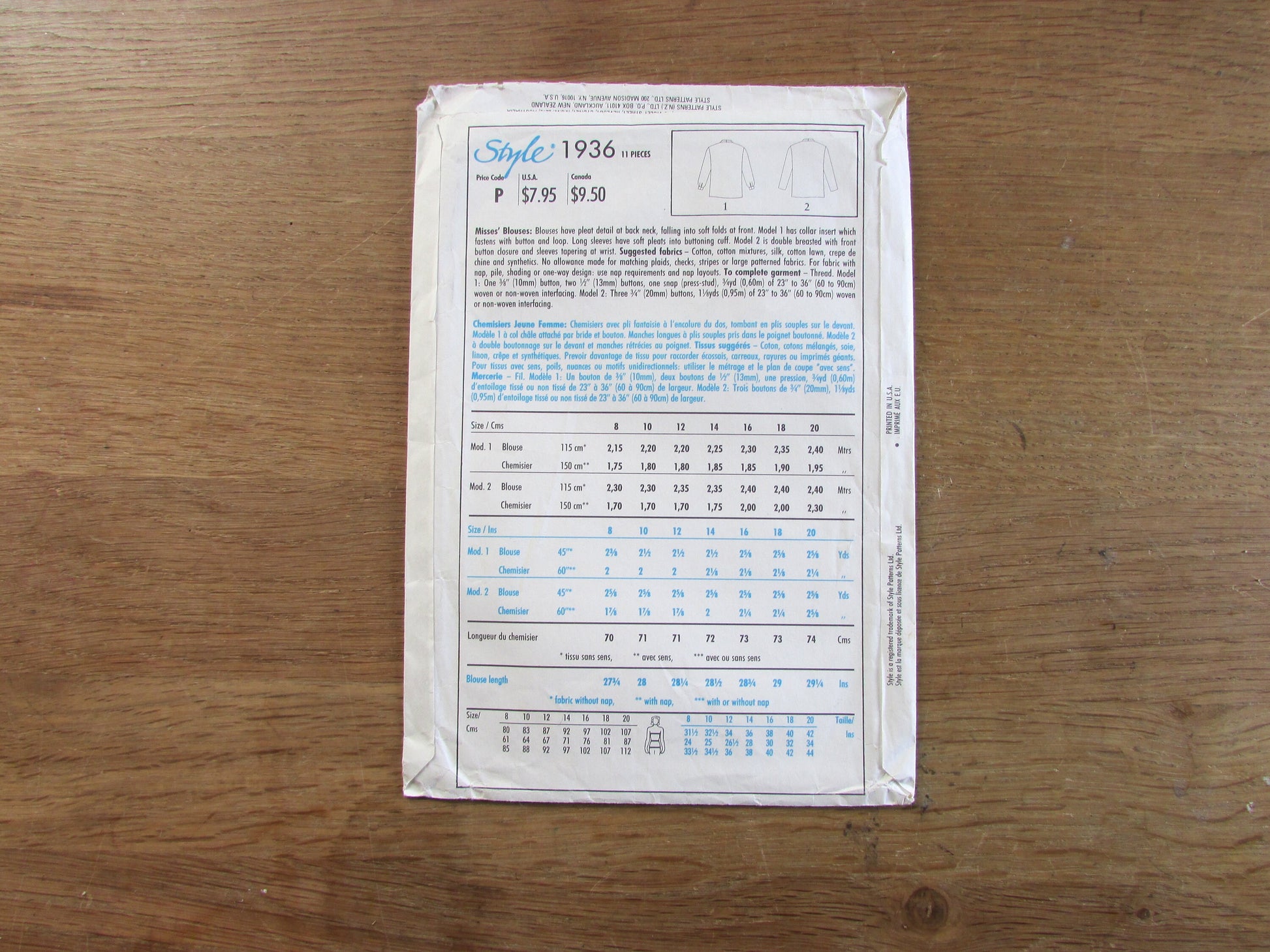 Part cut 1991 Style 1936 sewing pattern for misses' blouse, sizes 8 to 20 (part cut to size 20, complete)