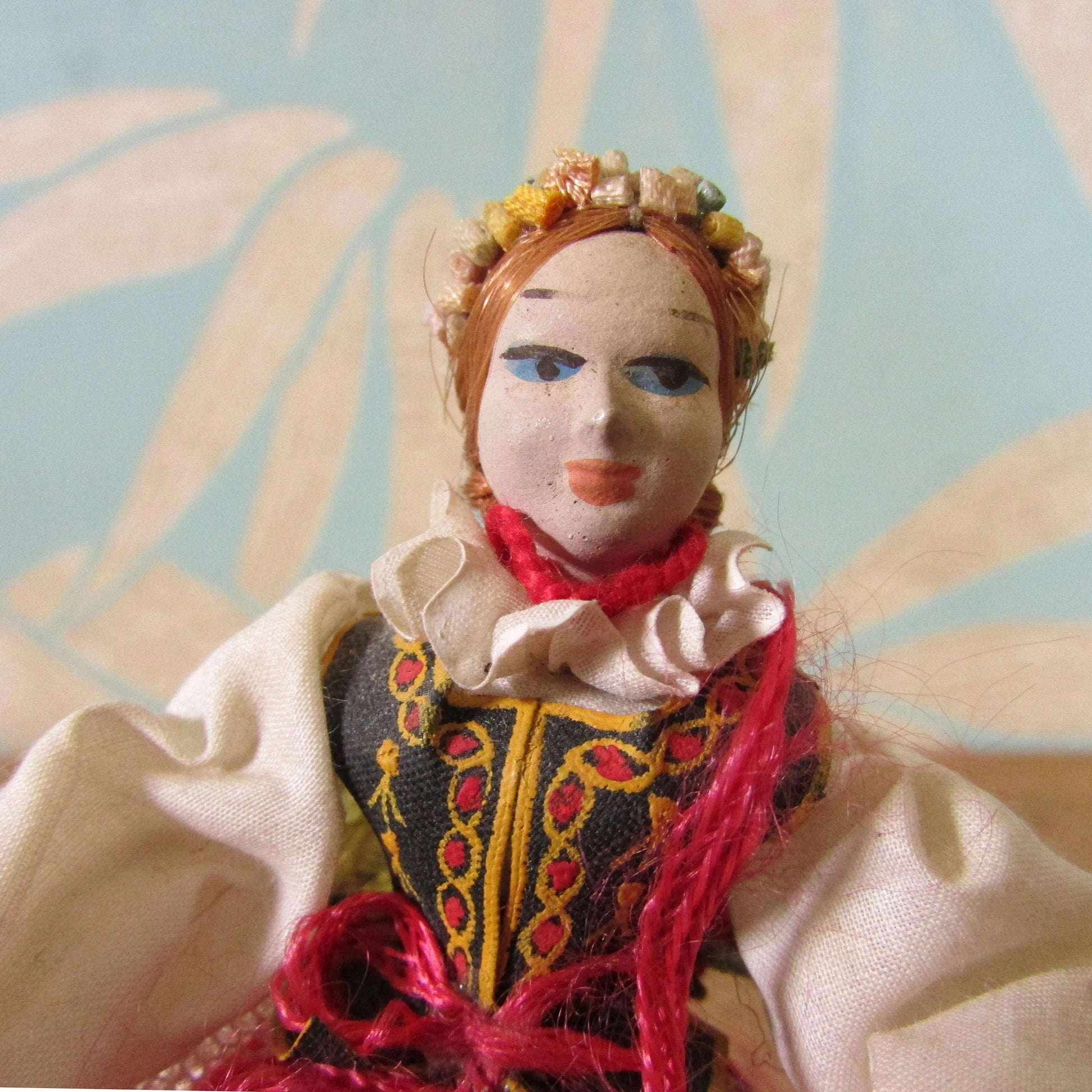 This charming vintage Krakowianka doll brings a splash of Polish heritage to any collection! Standing at a petite 12cm, this folk beauty showcases the vibrant traditional costume of Kraków's region, complete with intricate embroidered details and authentic regional dress. Perfect for collectors of cultural memorabilia or anyone enchanted by Eastern European folk art, this delightful piece captures the spirit and craftsmanship of Poland's rich cultural tapestry. A wonderful conversation starter that celebrates timeless tradition in miniature form.