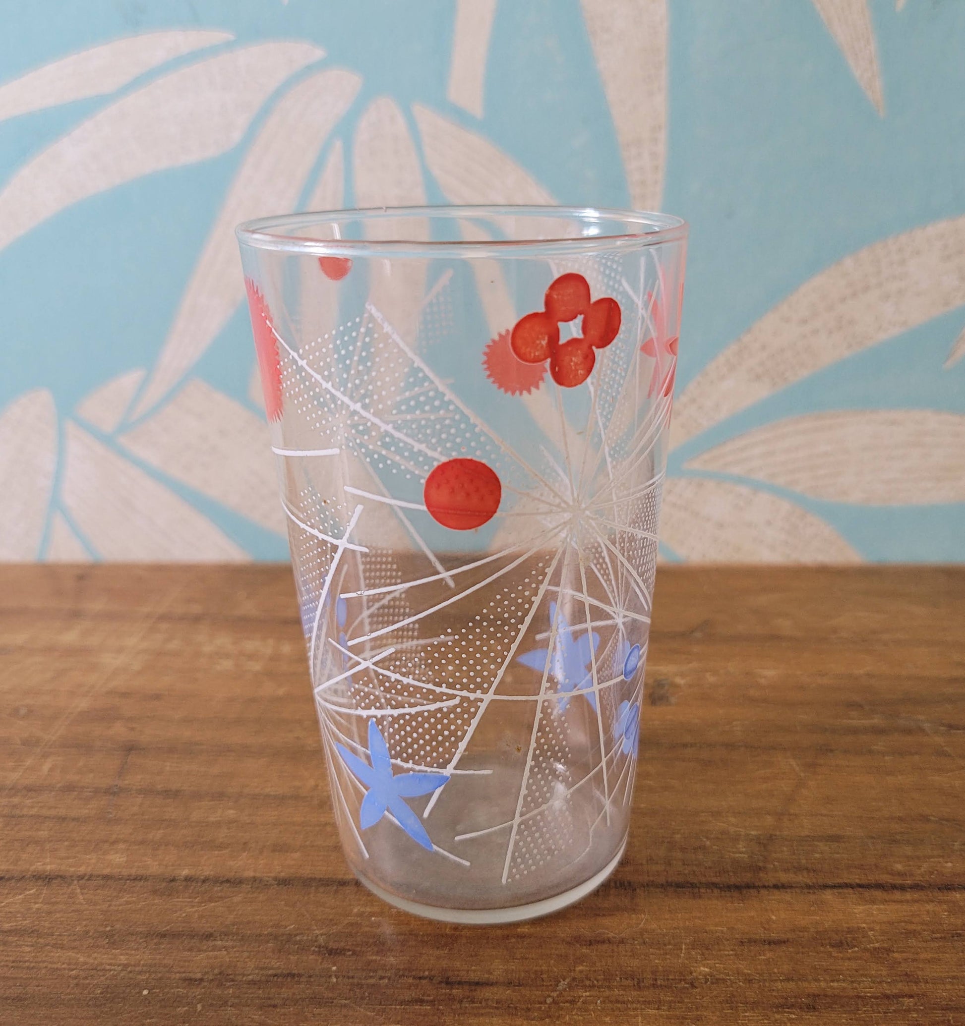 This set of three glass tumblers features a striking 1950s atomic starburst design, standing 11 cm tall. They capture the essence of mid-century modern style, blending vintage appeal with everyday functionality. Perfect for collectors and fans of retro glassware, these tumblers bring a touch of nostalgic elegance to any space while remaining practical for daily use.