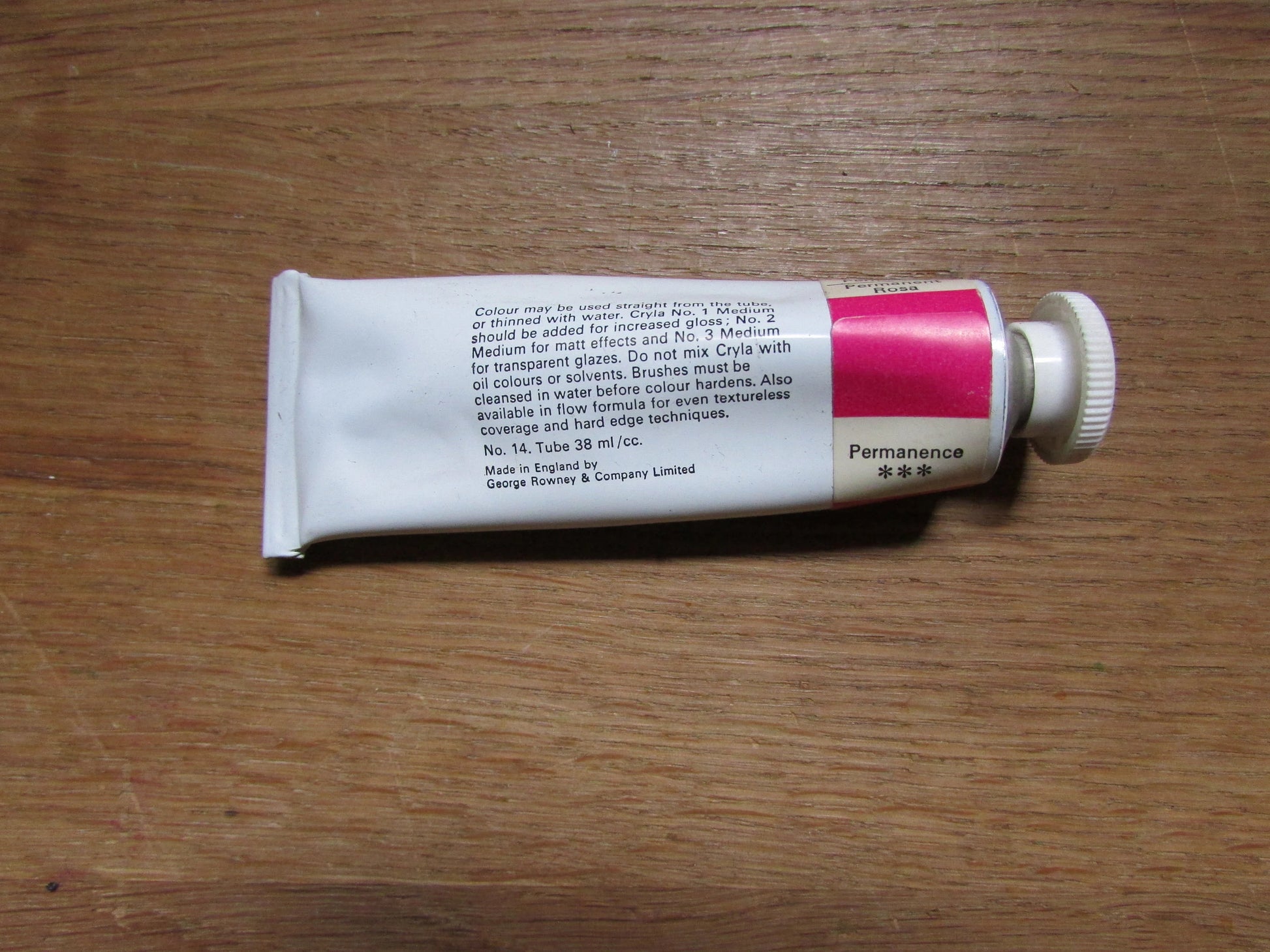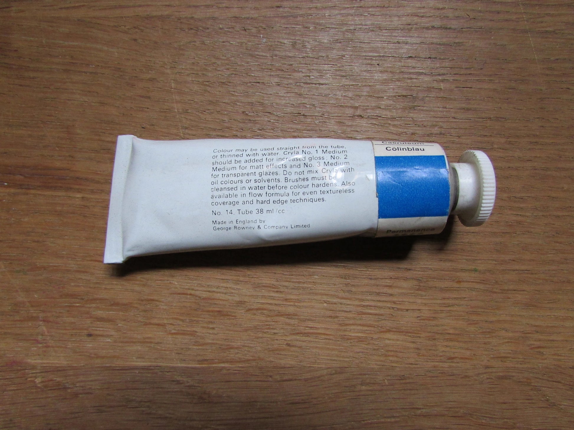 Three vintage Rowney Cryla acrylics (used) in Winsor Newton (Budget Oil Colour) box