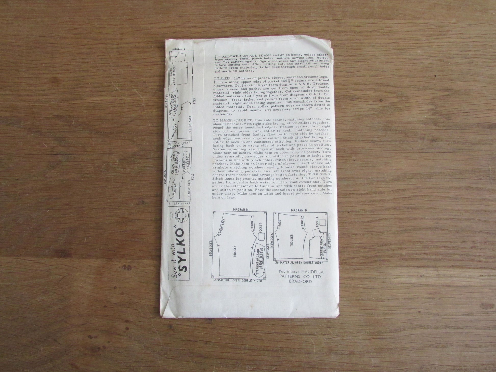 Uncut 1940s/50s Maudella 3163 sewing pattern for boy's pyjamas, size 13 & 14 years (complete)