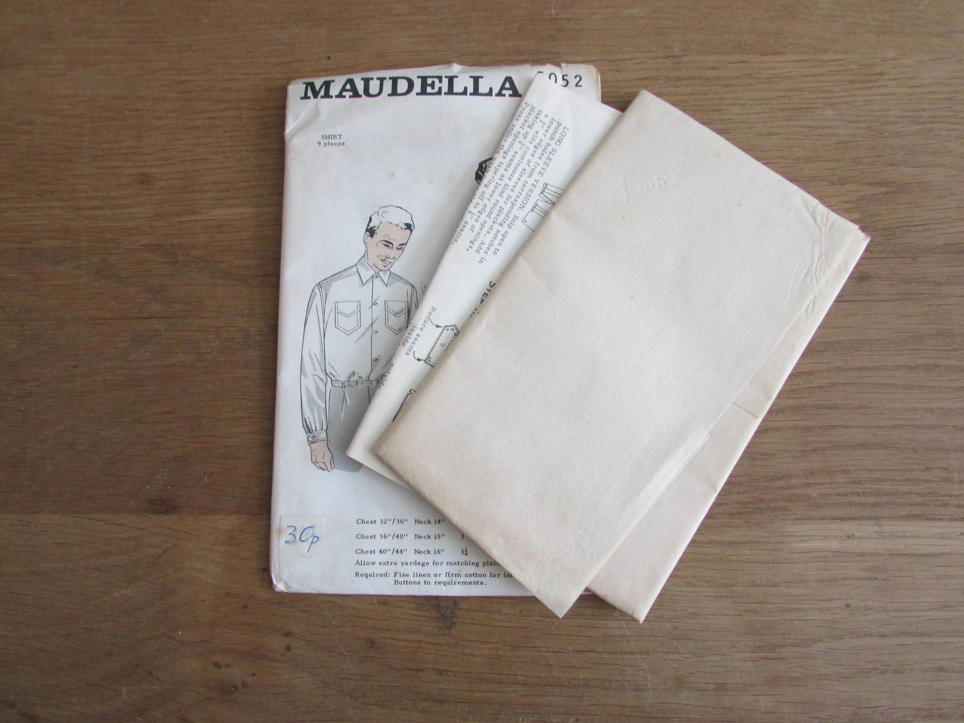 Uncut 1950s Maudella 5052 sewing pattern for men's long or short sleeve shirt, chest 32" - 36" (complete)