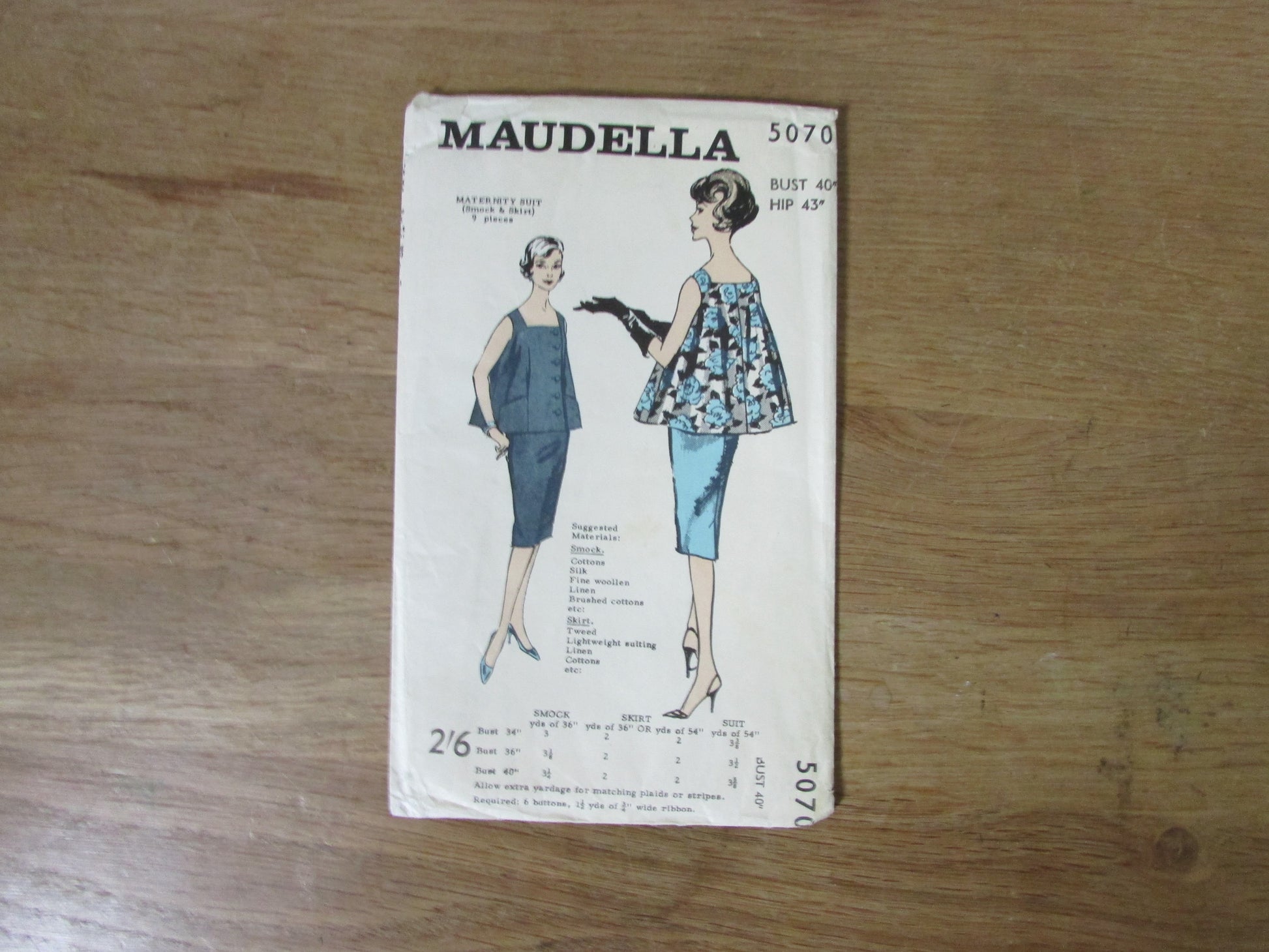 Uncut 1950s Maudella 5070 sewing pattern for maternity suit (smock & skirt), size 18/20 (complete)