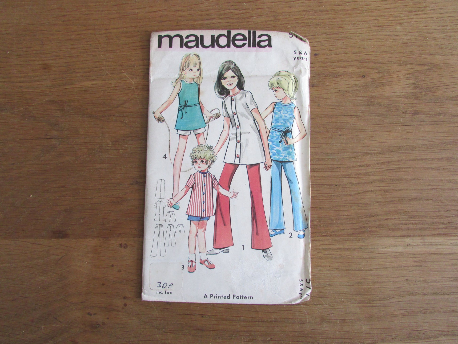 Uncut 1970s Maudella 5711 sewing pattern for child's dress and trousers or "hot pants", age 5 & 6 years (complete)