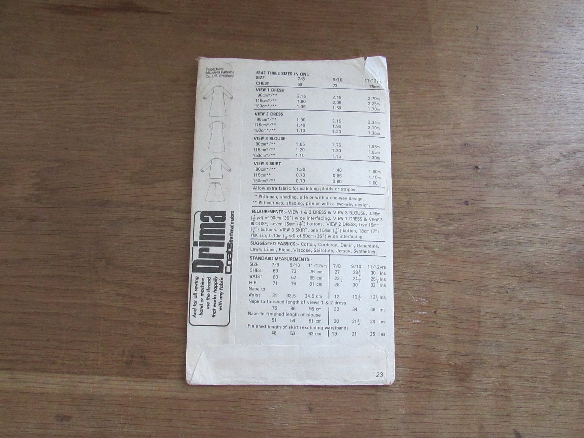 Uncut 1970s New Look Maudella 6142 sewing pattern for girl's dress, blouse & skirt, sizes 7/8-9/10-11/12 years (complete)