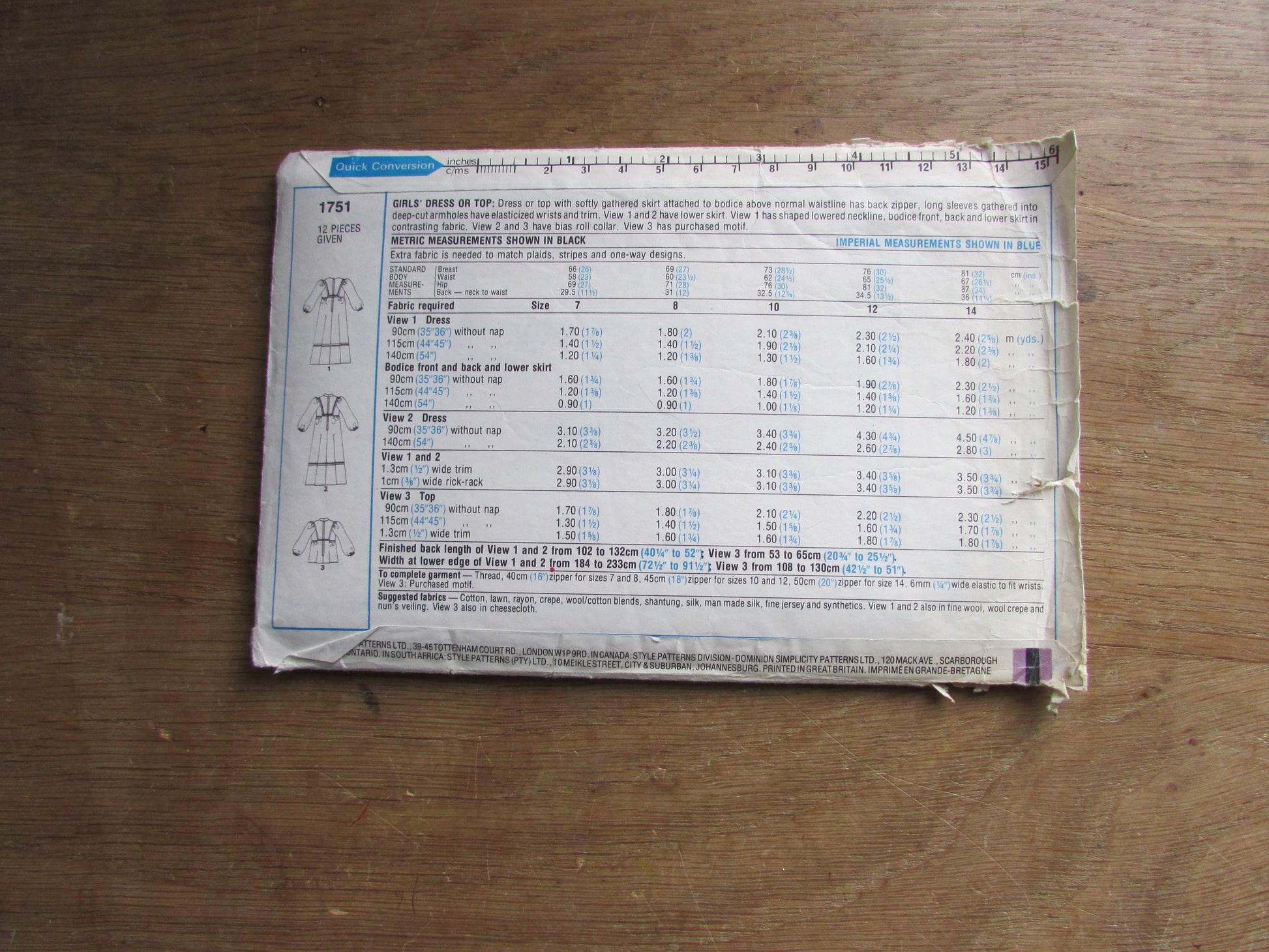 Uncut 1970s Style 1751 sewing pattern for girls' dress or top, size 8 (complete)