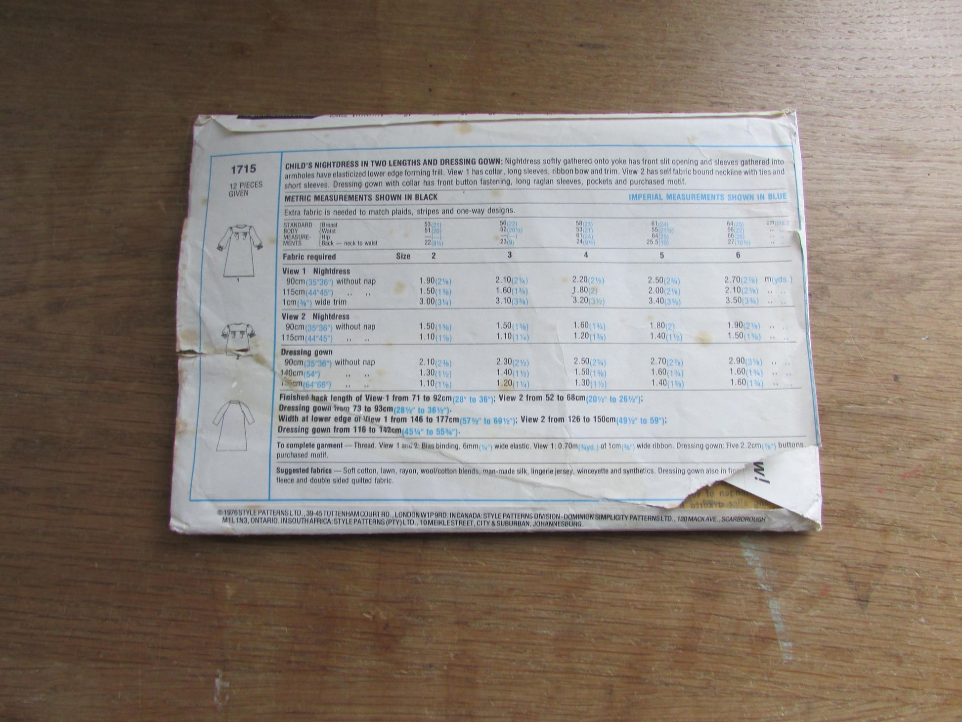 Uncut 1976 Style 1715 sewing pattern for child's nightdress & dressing gown, child size 4 (complete)