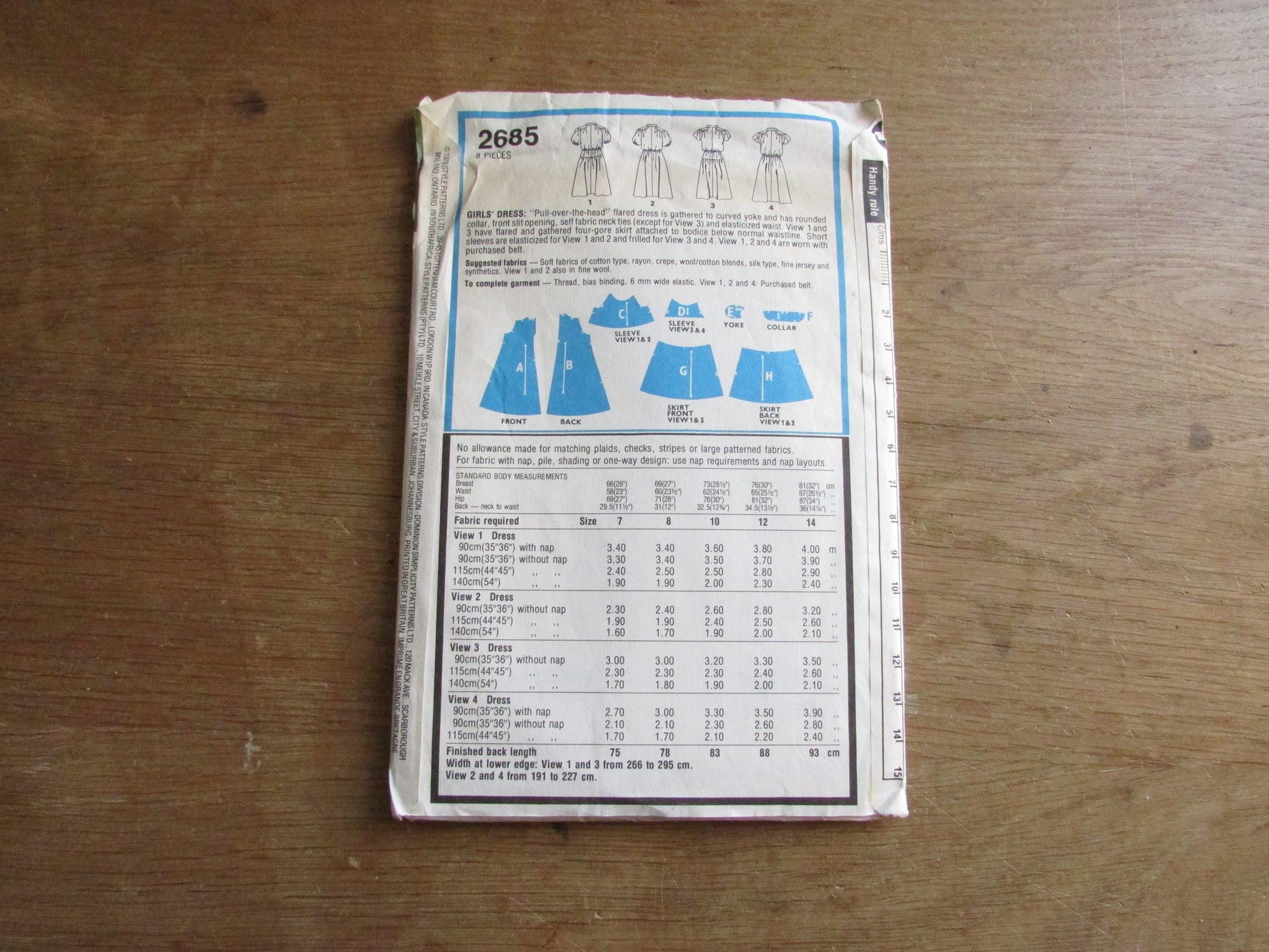Uncut 1979 Style 2685 sewing pattern for girls' "pull-over-the-head" flared dress, size 8 (complete)