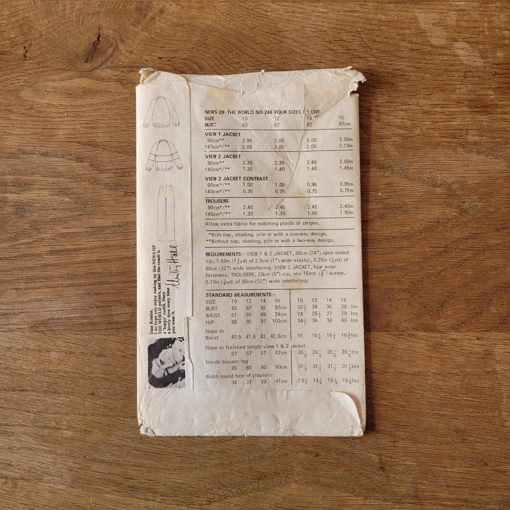Uncut 1980s News of the World No.246 sewing pattern for jacket & trousers, sizes 10 to 16 (complete)