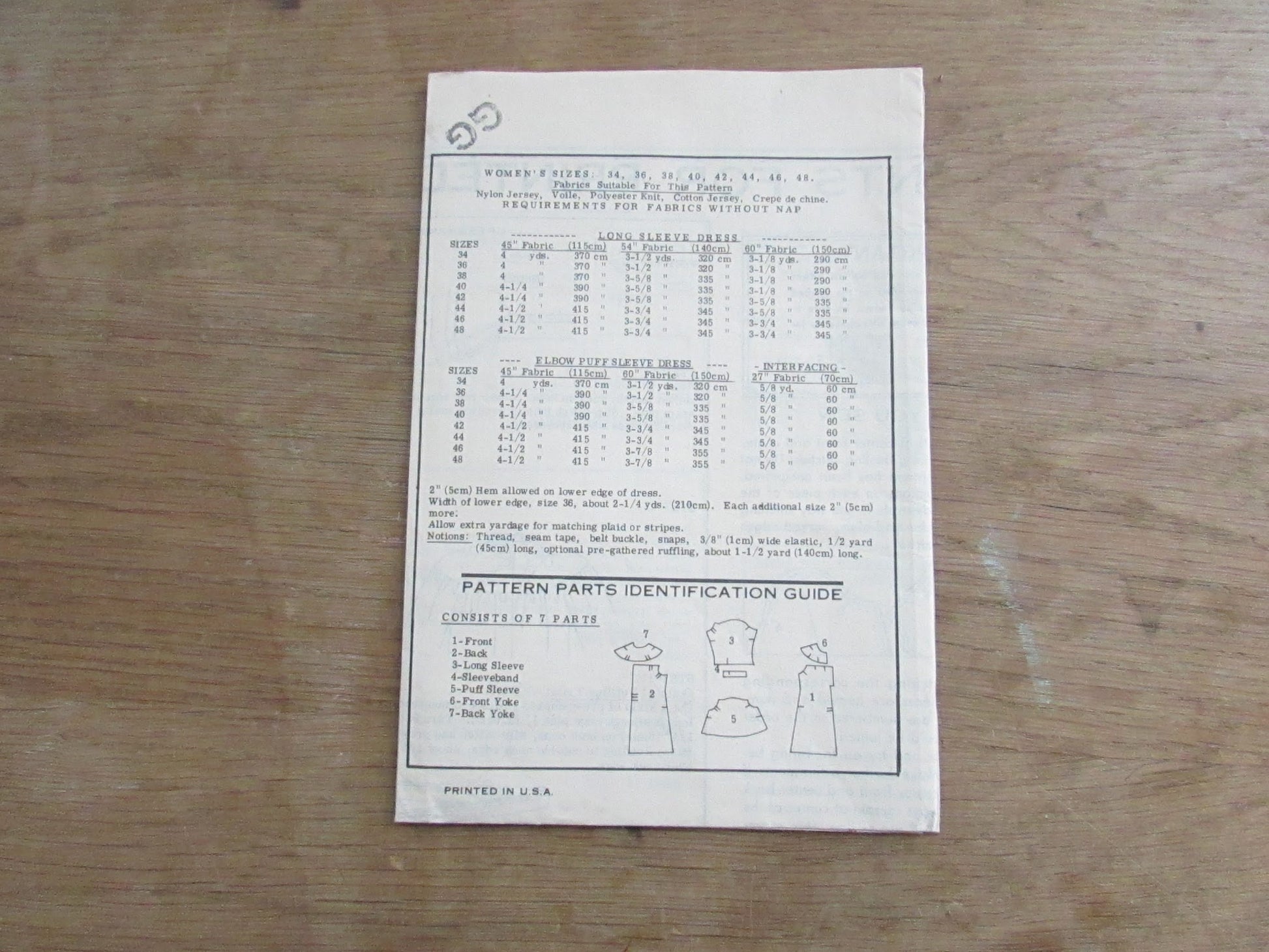 Uncut 1980s Printed Pattern 4906 sewing pattern for women's longer elbow sleeve dress, size 16-18 (complete) bust 42"