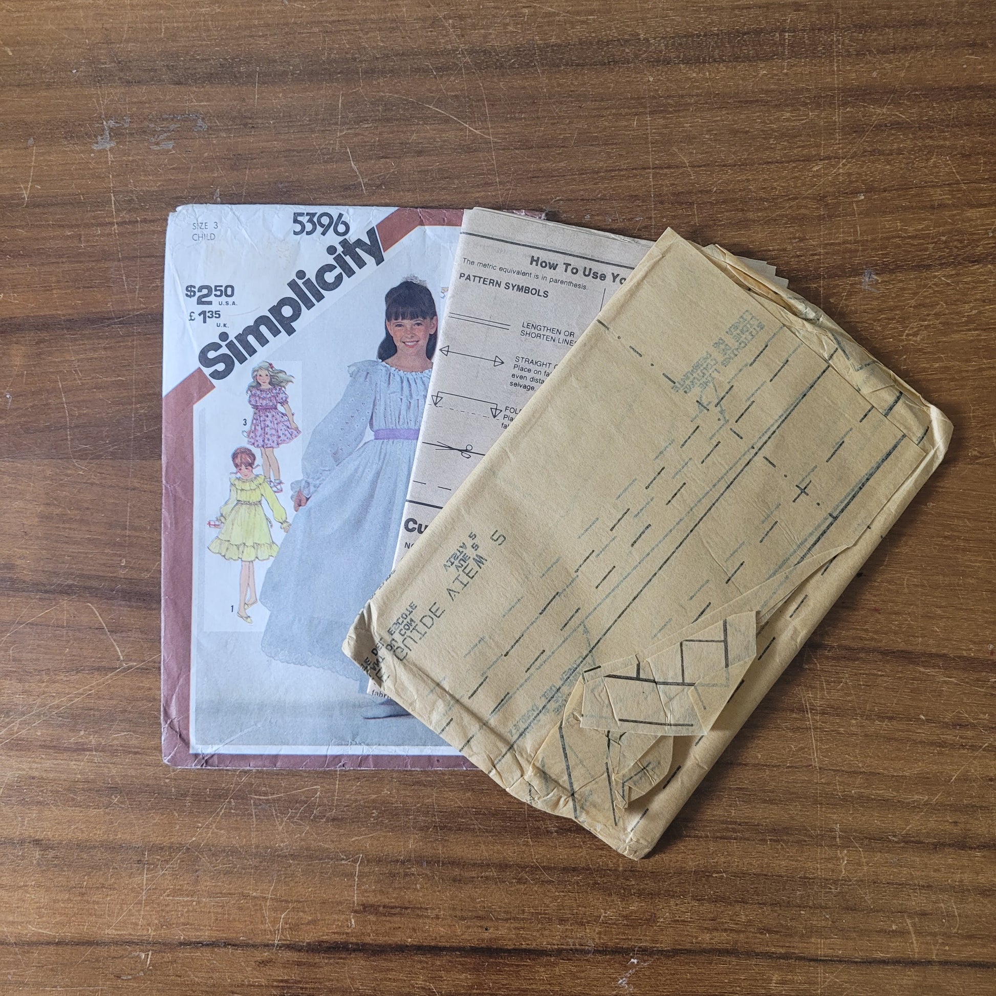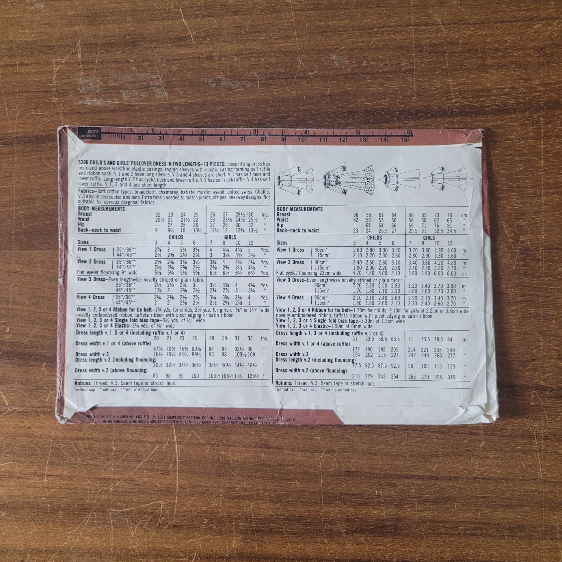 Uncut 1981 Simplicity 5396 sewing pattern for child's & girls' pullover dress in 2 lengths, size 3 (complete)