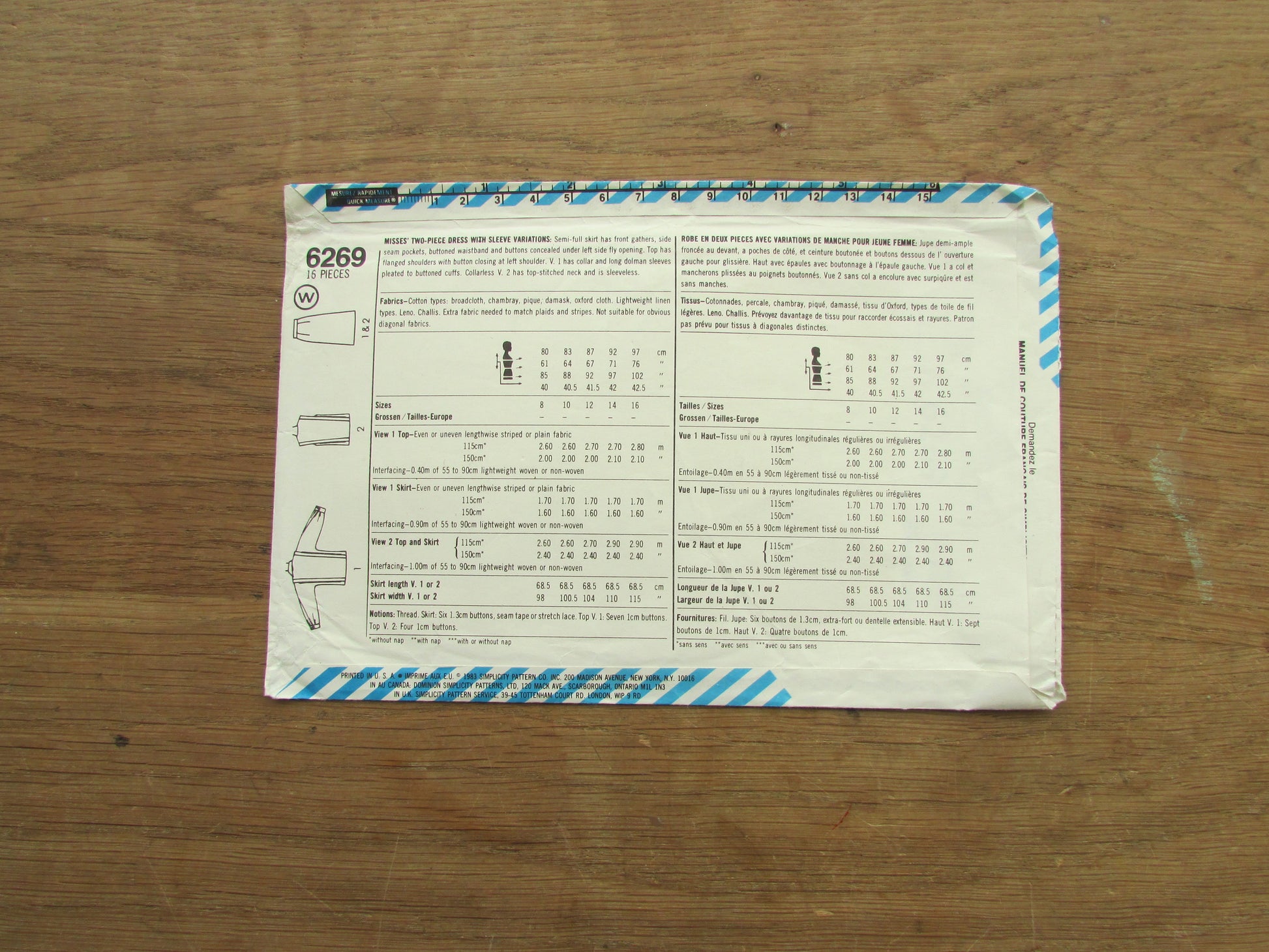 Uncut 1983 Simplicity 6269 sewing pattern by Henry Grethel for misses' two-piece dress with sleeve variations, size 14 (complete)