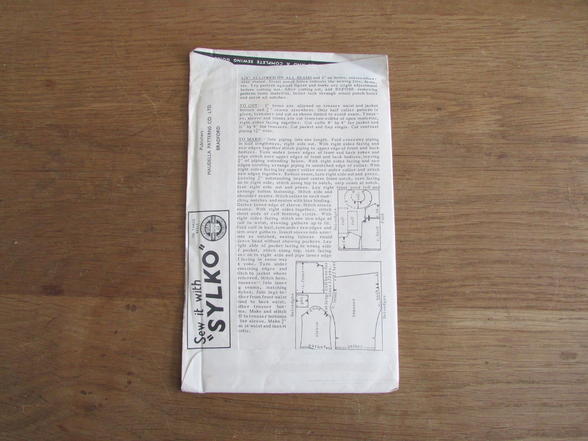 Used 1940s Maudella 342 sewing pattern for girl's pyjamas, age 1 & 2 years (see description below) missing pattern pieces for cuffs only