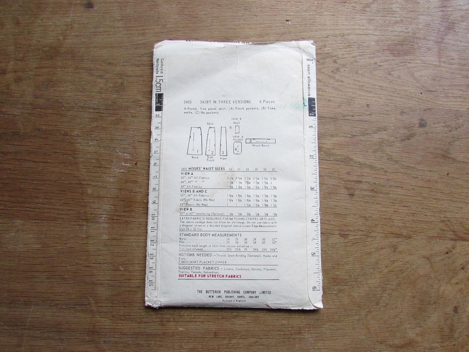 Used 1965 Butterick 3403 sewing pattern for skirt in three versions, size 10 (complete)