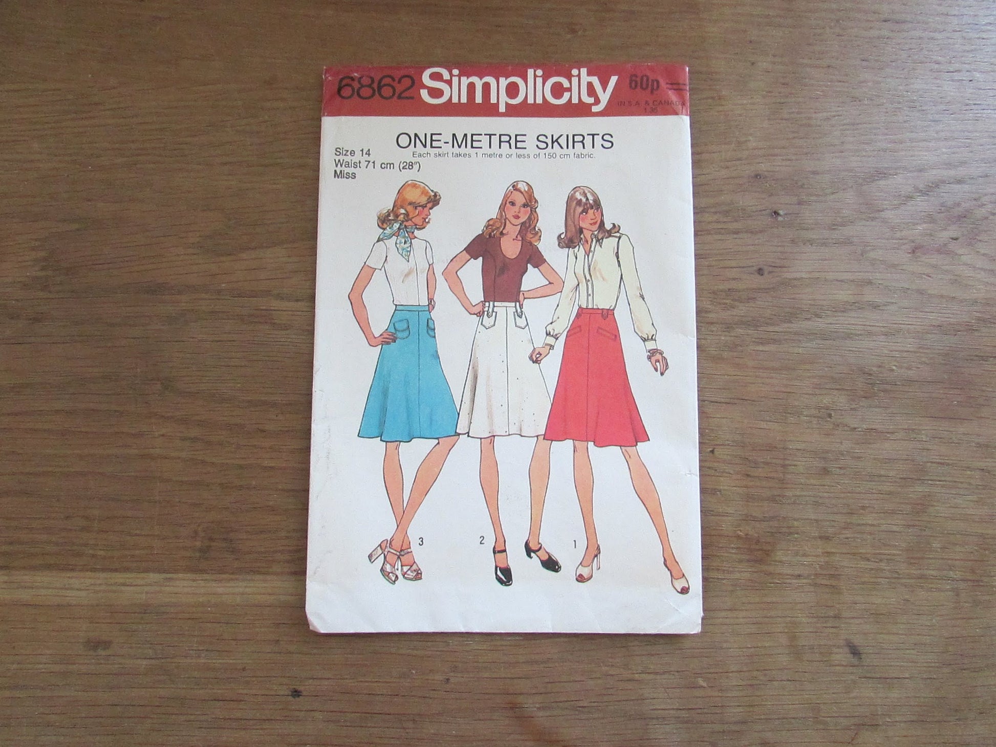Used 1975 Simplicity 6862 sewing pattern for misses' skirts, size 14 (see description below)