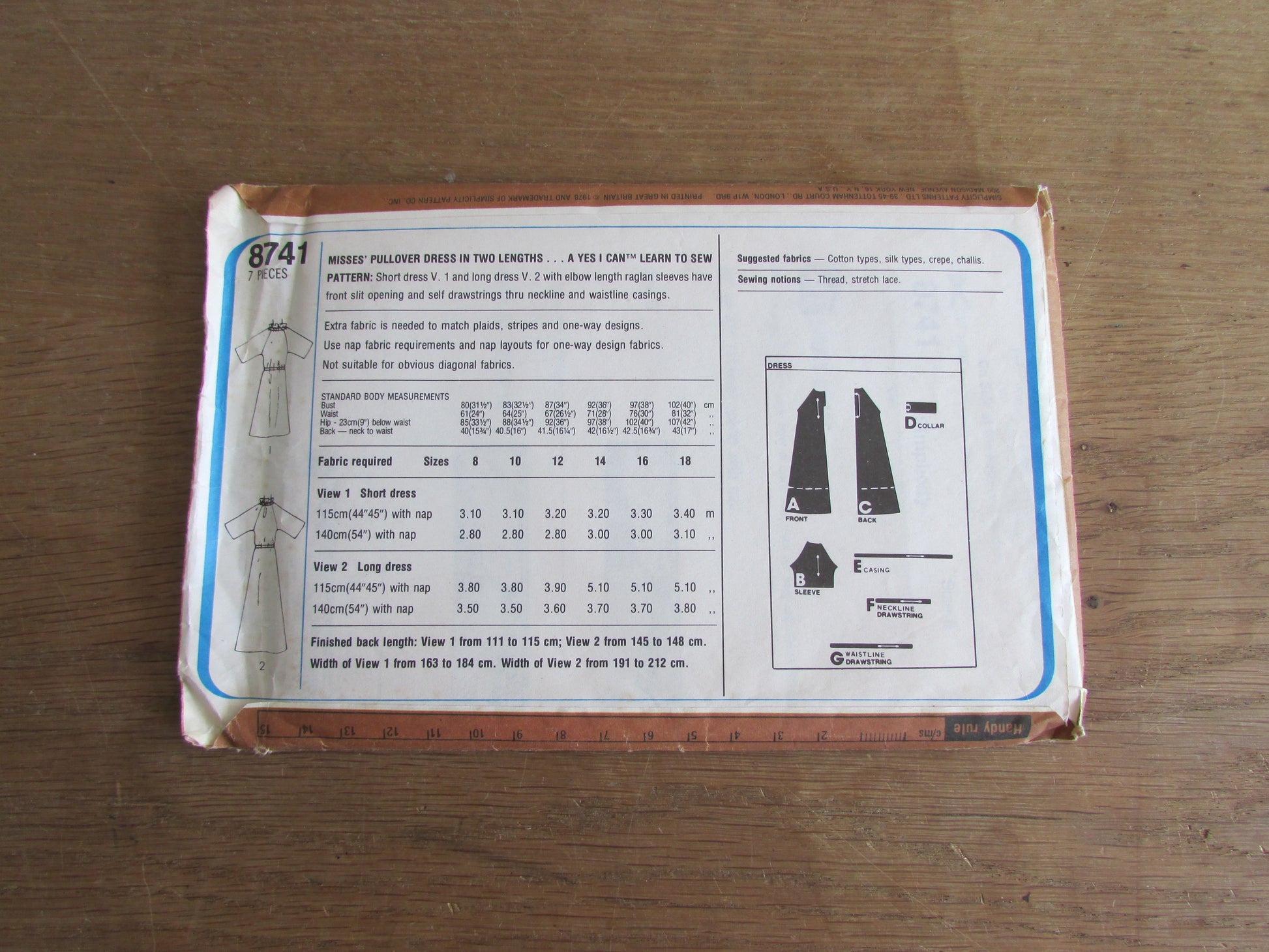 Used 1978 Simplicity 8741 sewing pattern for misses' pullover dress in two lengths, size 8 (complete)