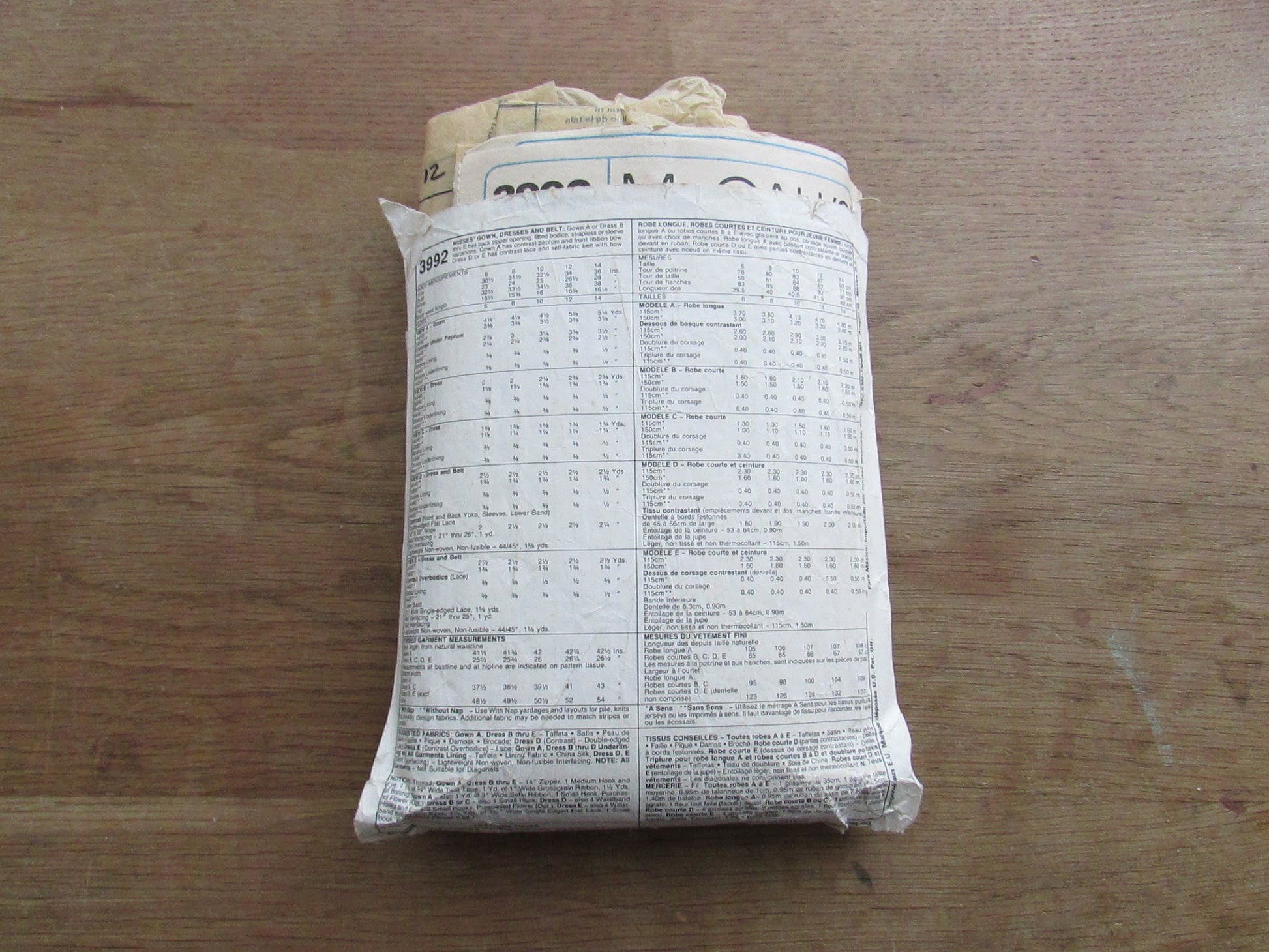 Used 1988 McCall's 3992 sewing pattern for gown, dresses & belt, size 12 (complete) slightly torn in places