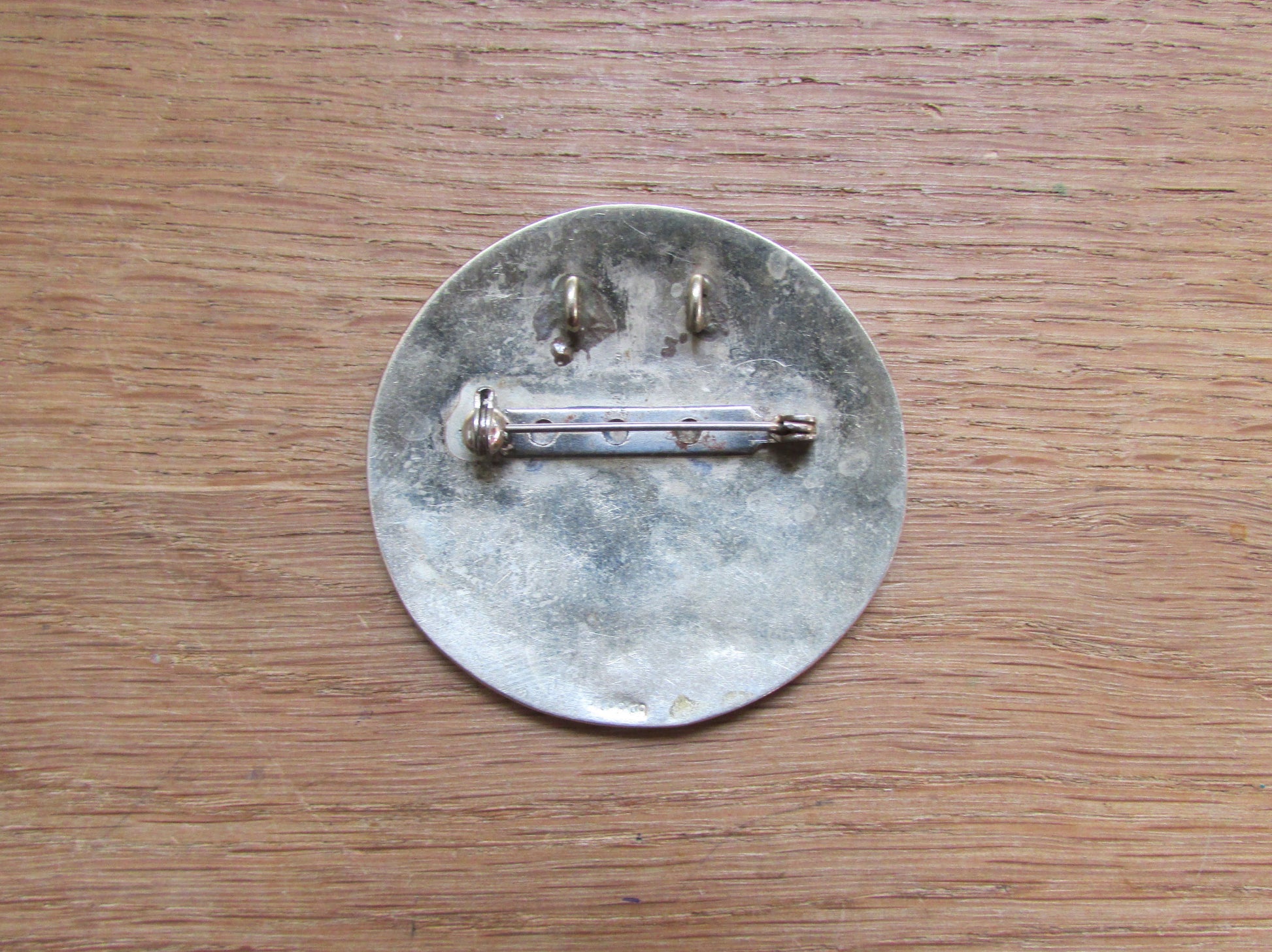 Vintage Aztec-style enamelled metal circle brooch/pendant, stamped ALPACA