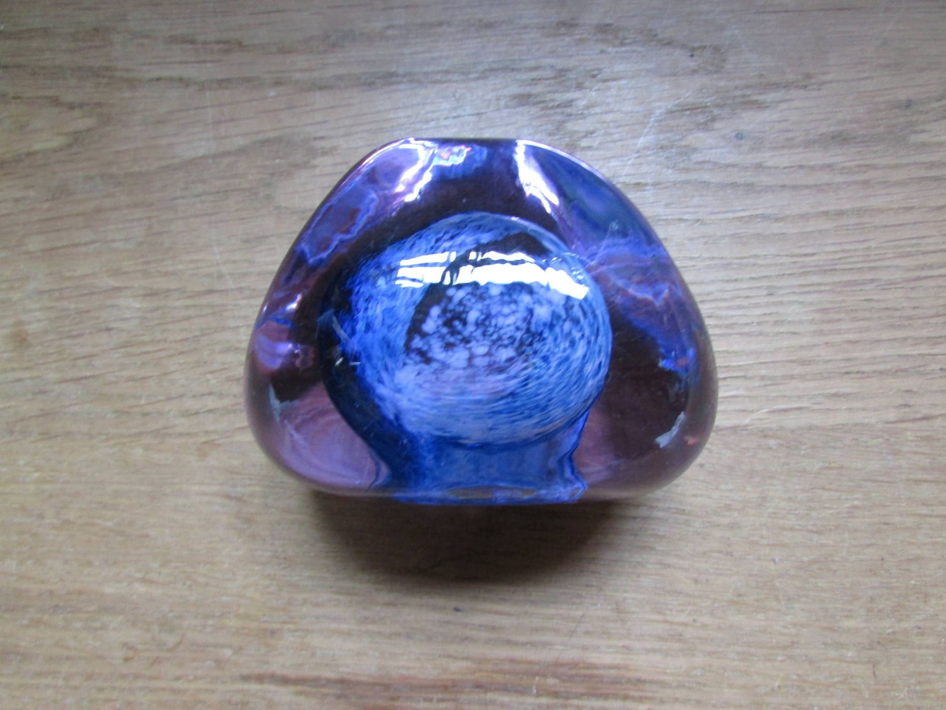 Vintage Caithness Glass CIIG smoky blue swirl pebble paperweight