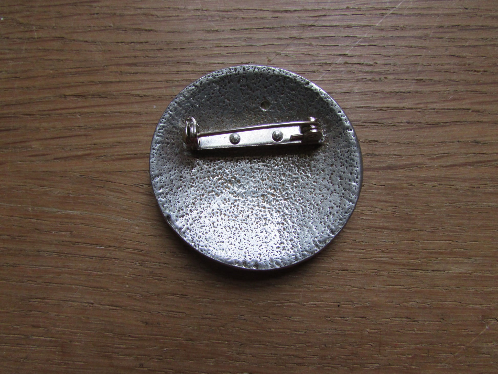 This vintage Celtic pewter brooch features intricate knotwork with captivating green agate cabochons. Measuring 4cm in diameter, it’s a perfect accessory that adds timeless elegance and a touch of ancient artistry to any outfit. Ideal for those who appreciate meaningful, handcrafted jewelry with a rich heritage.