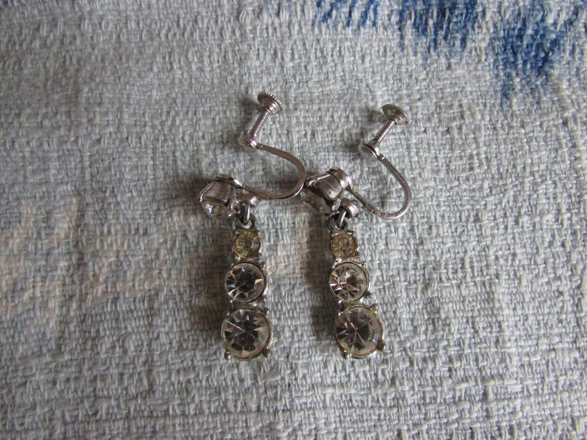 Vintage diamanté drop screw-back earrings