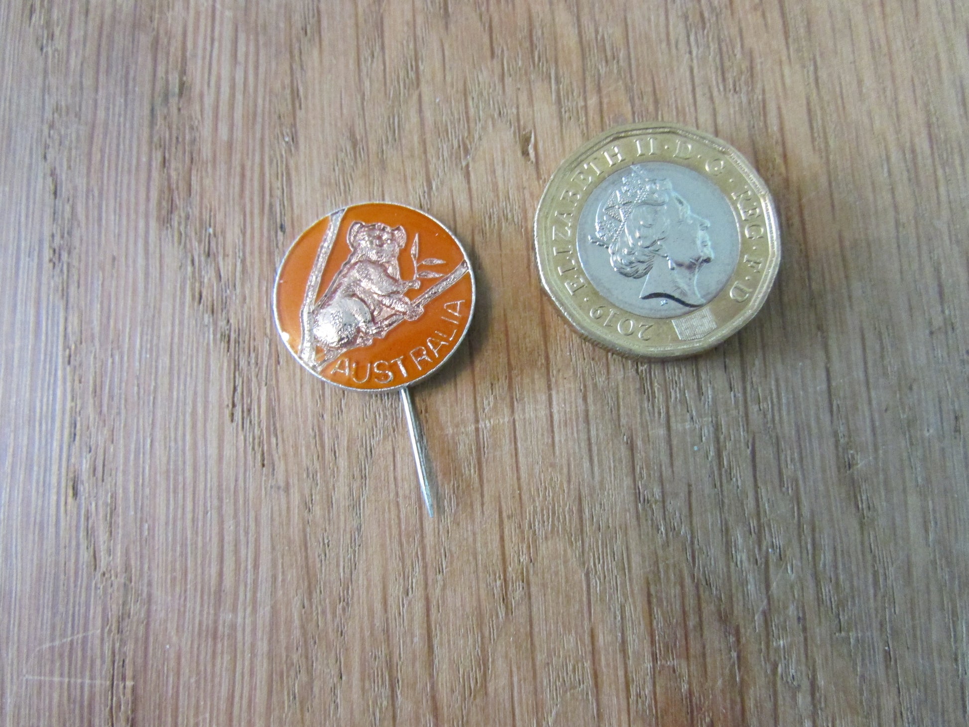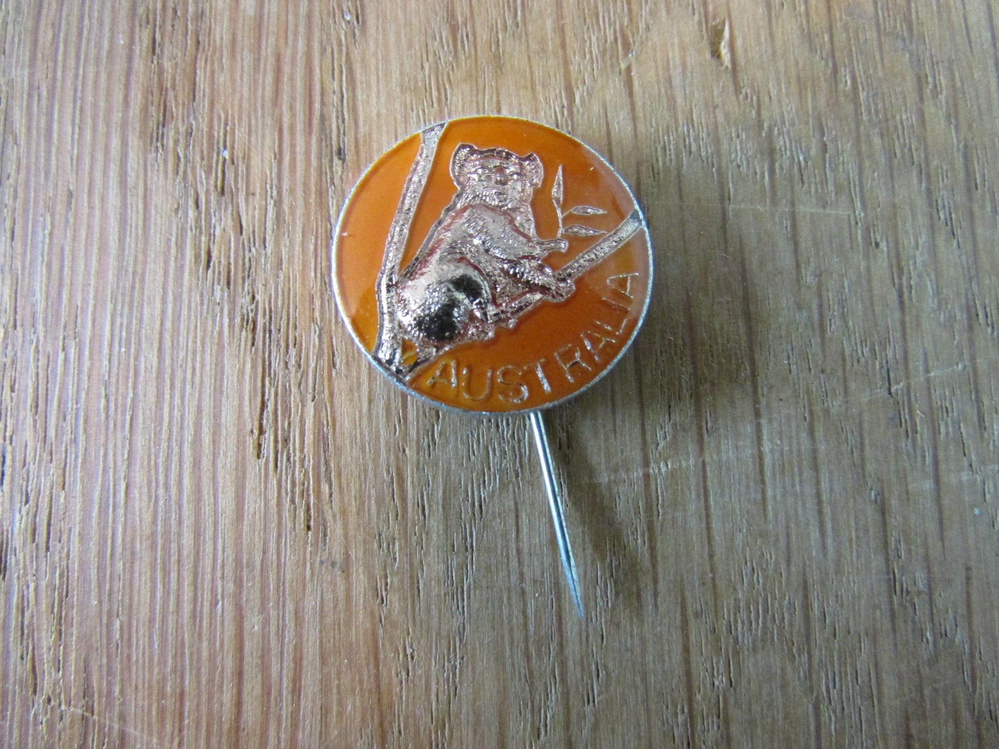 This vintage enamelled Australia Koala souvenir pin measures 3 cm in length and 2 cm in diameter, making it a charming and compact keepsake. Perfect for collectors and lovers of unique travel mementos, its detailed enamel design captures the iconic Australian koala with timeless appeal. Wear it proudly or gift it to someone special as a reminder of the beauty and spirit of Australia.